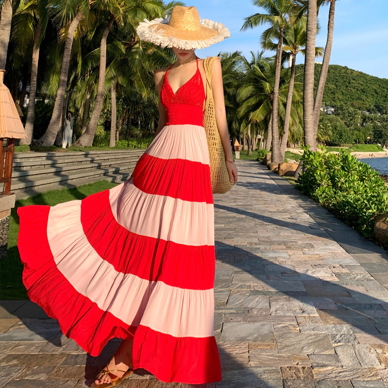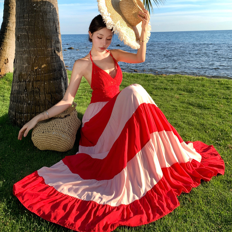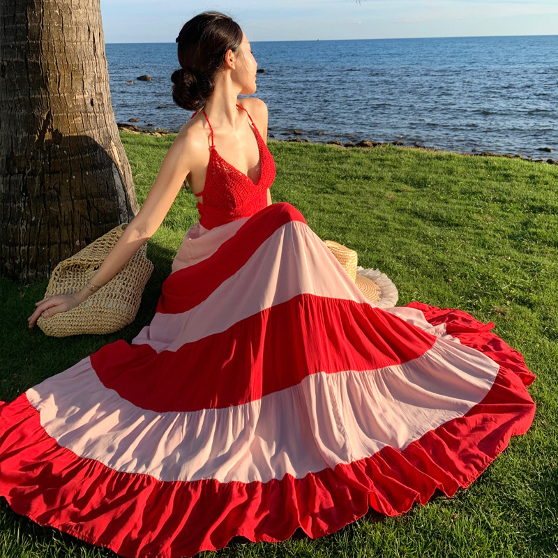 生日约会裙夏季绝美小裙子独特别致漂亮高级感气质挂脖度假连衣裙