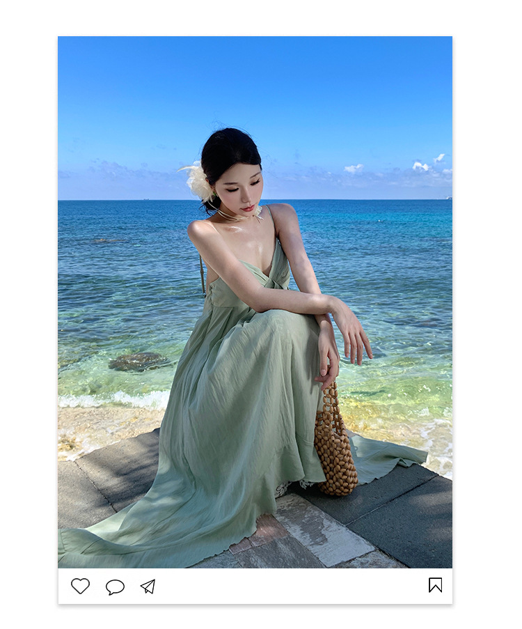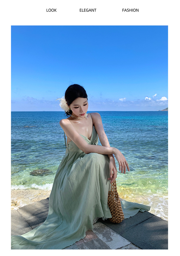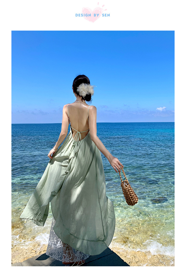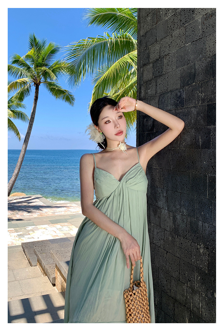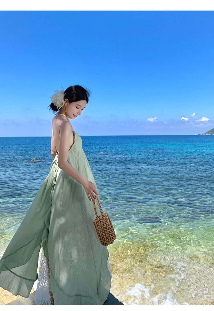 挂脖吊带连衣裙夏季新款夏装灰色气质感海边长款裙子大码