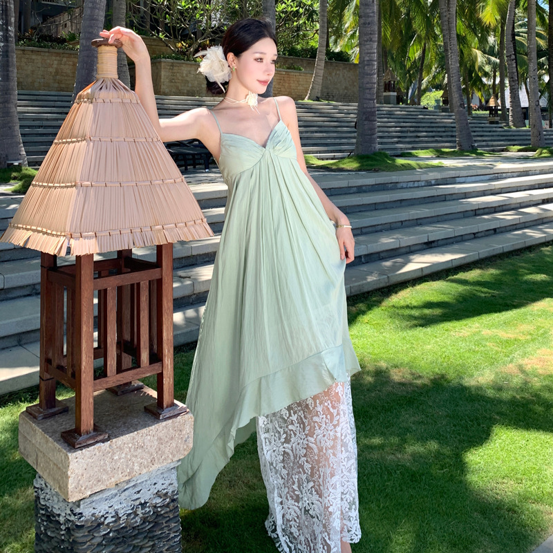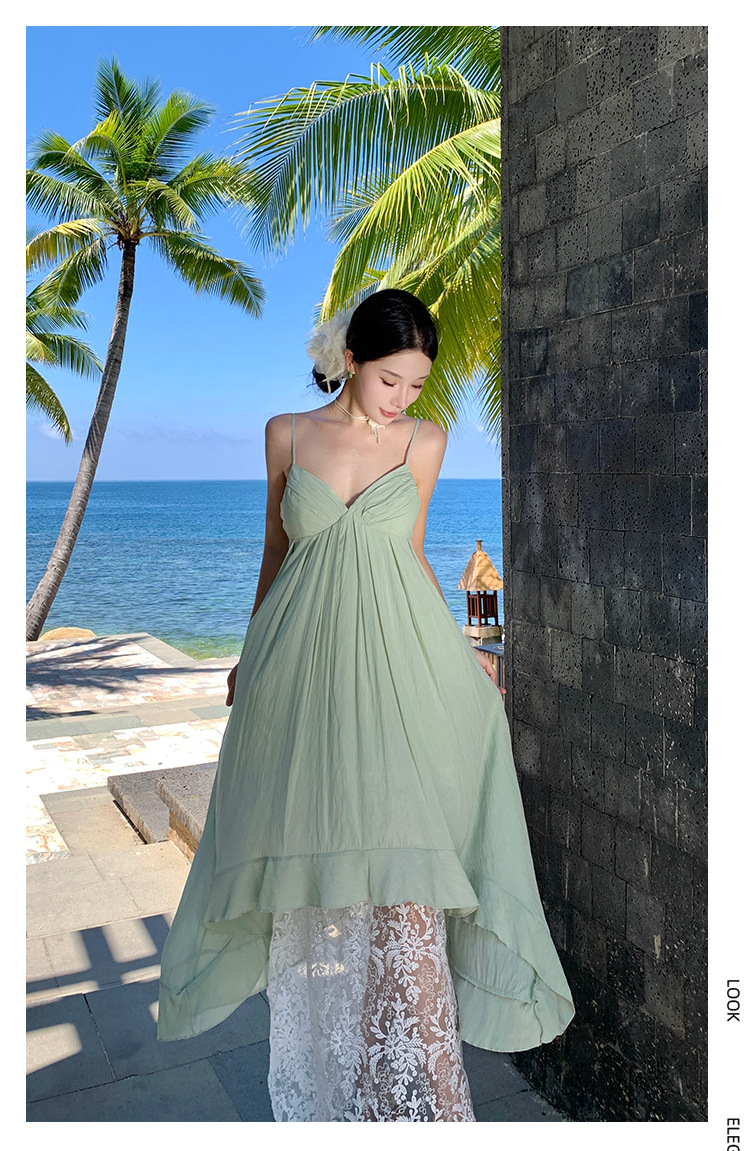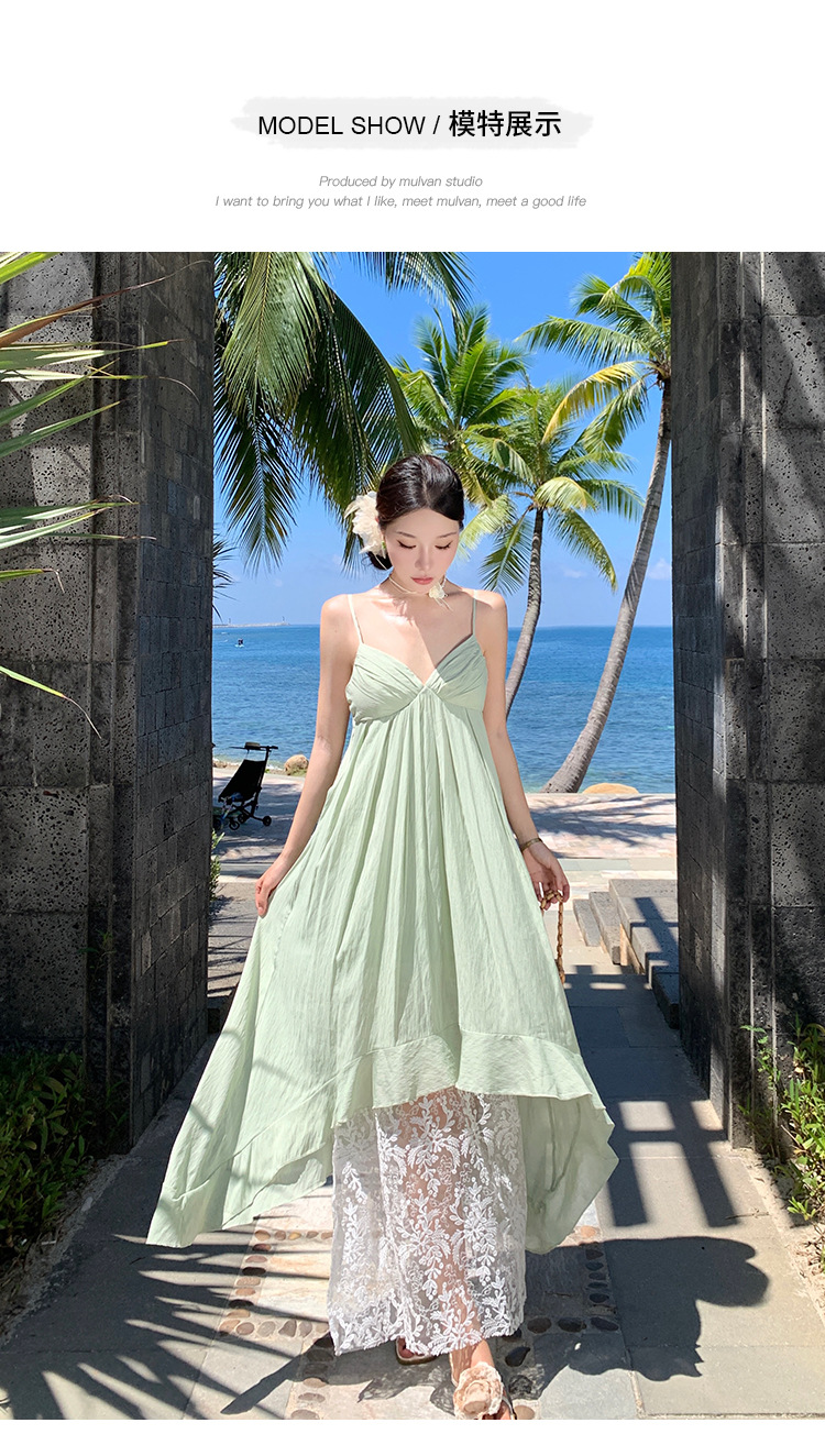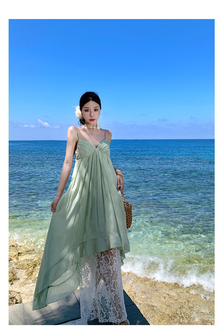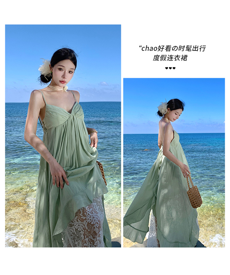 度假风假两件沙滩裙女夏季新款吊带蕾丝拼接超仙海边氛围感连衣裙