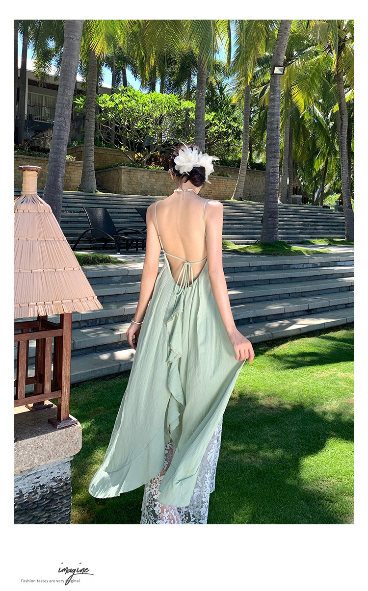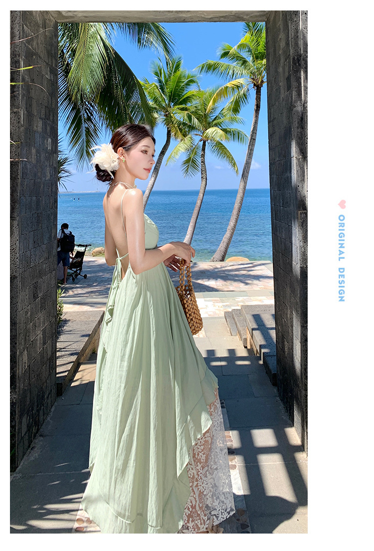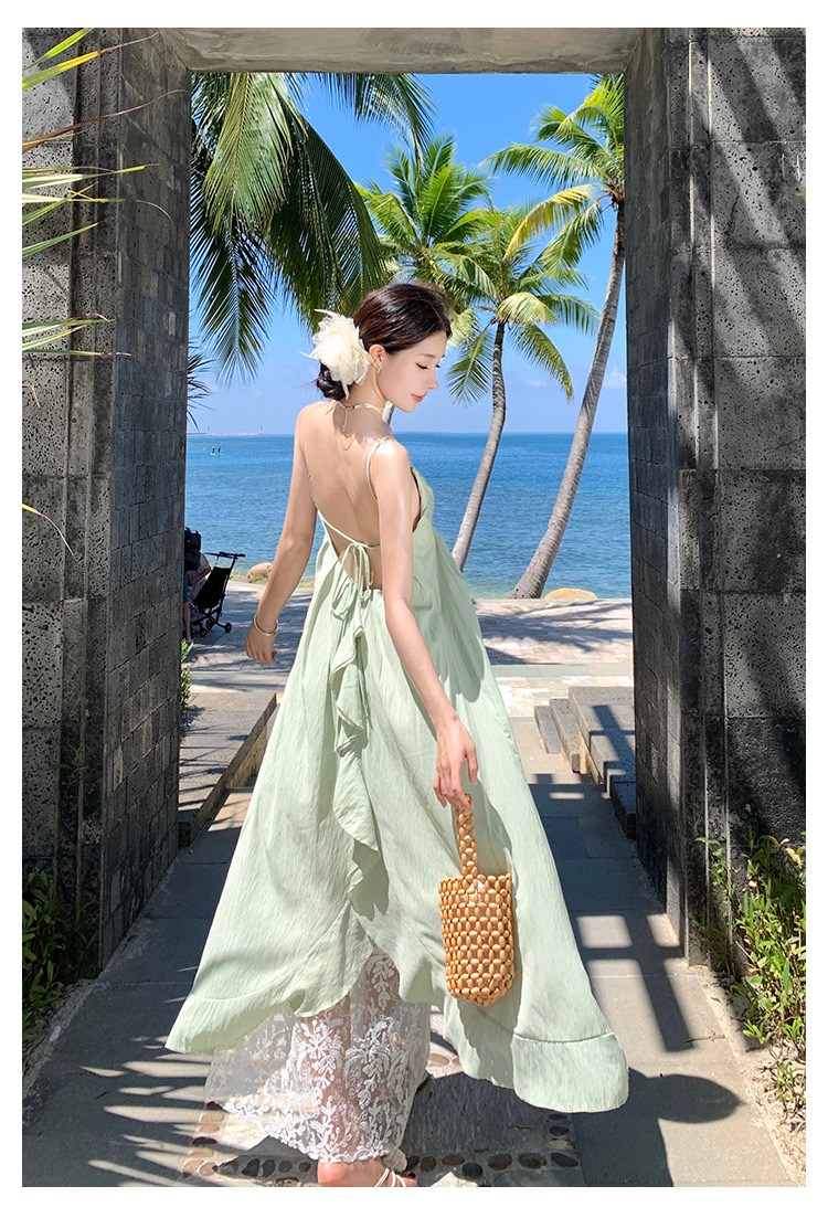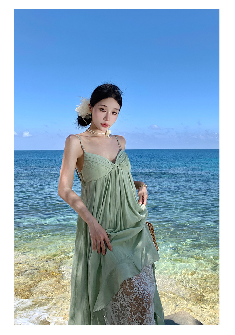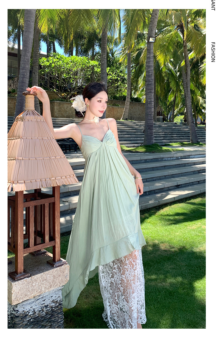度假风假两件沙滩裙女夏季新款吊带蕾丝拼接超仙海边氛围感连衣裙