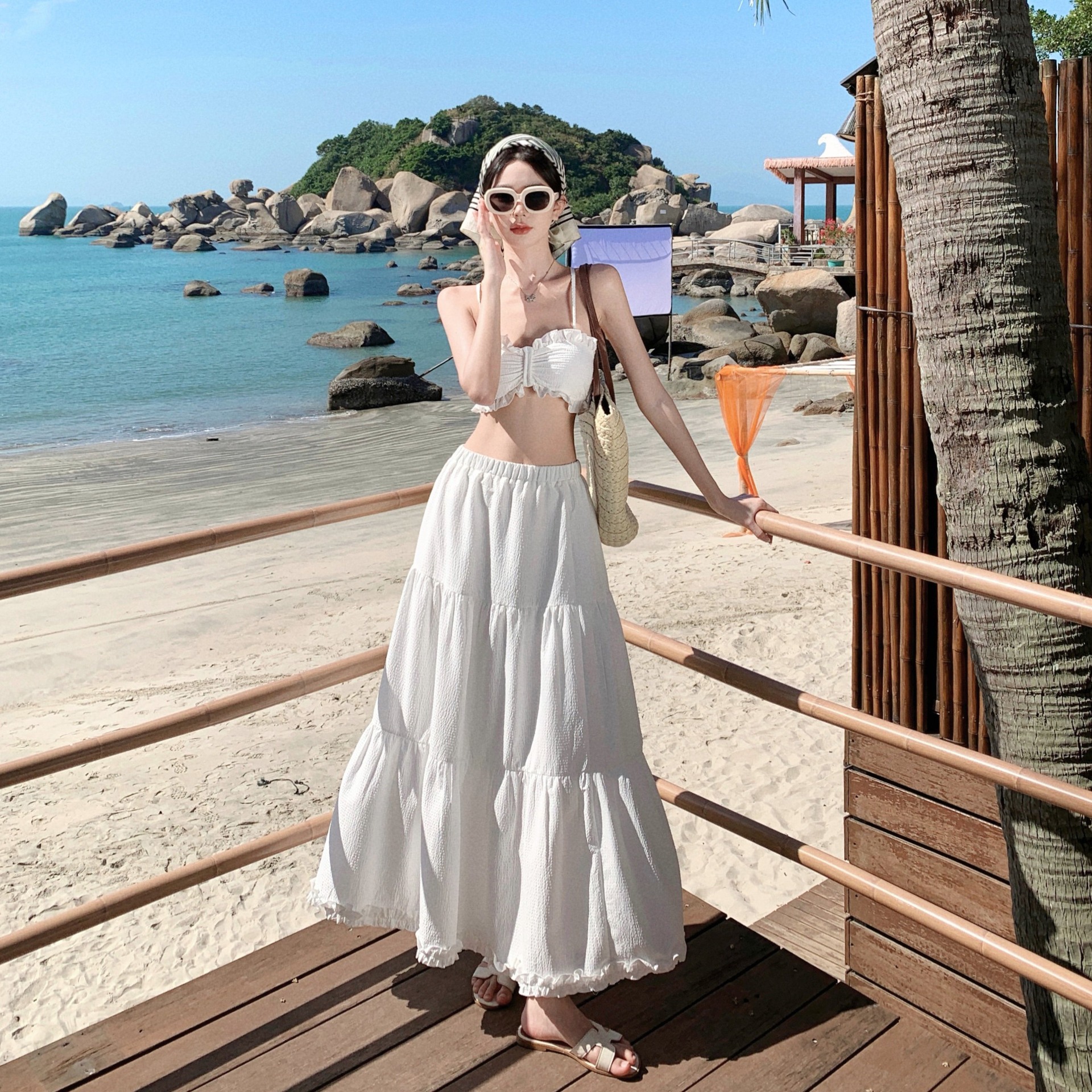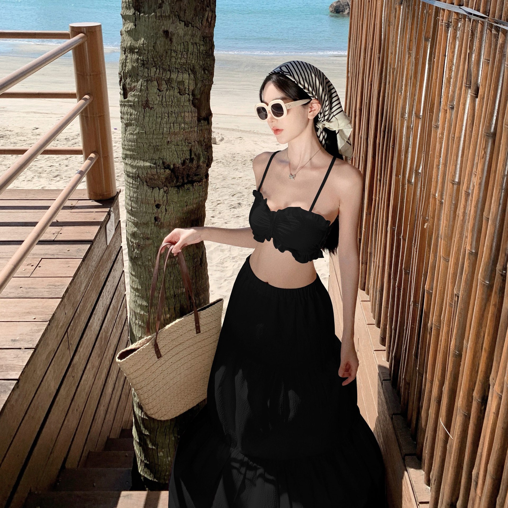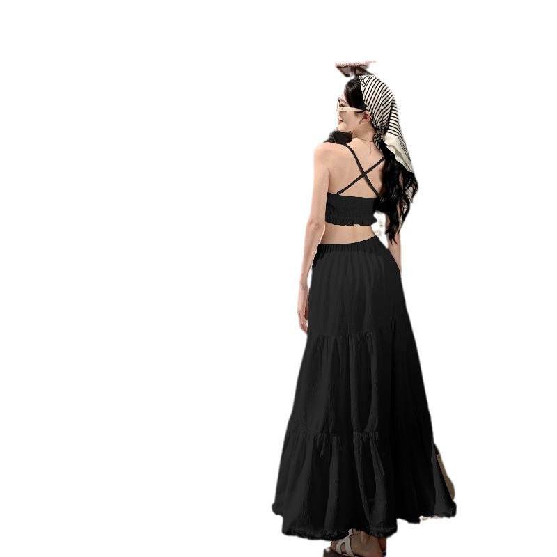 带胸垫吊带背心女两件套高腰蛋糕裙半身裙套装