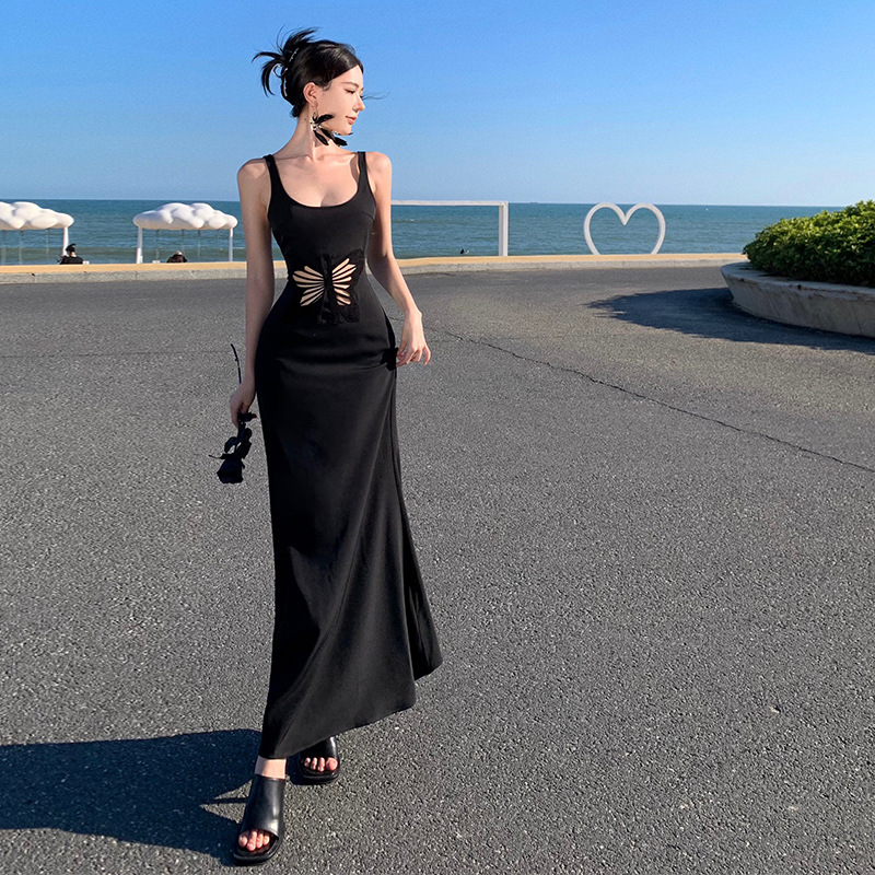 设计感名媛风蝴蝶绣花镂空连衣裙女夏季气质修身礼服