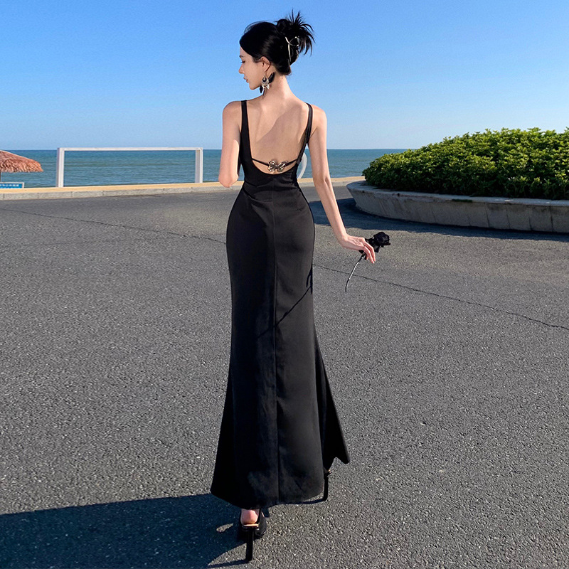 温柔风修身条纹长款背心裙女装新款夏款独特超好看针织连衣裙