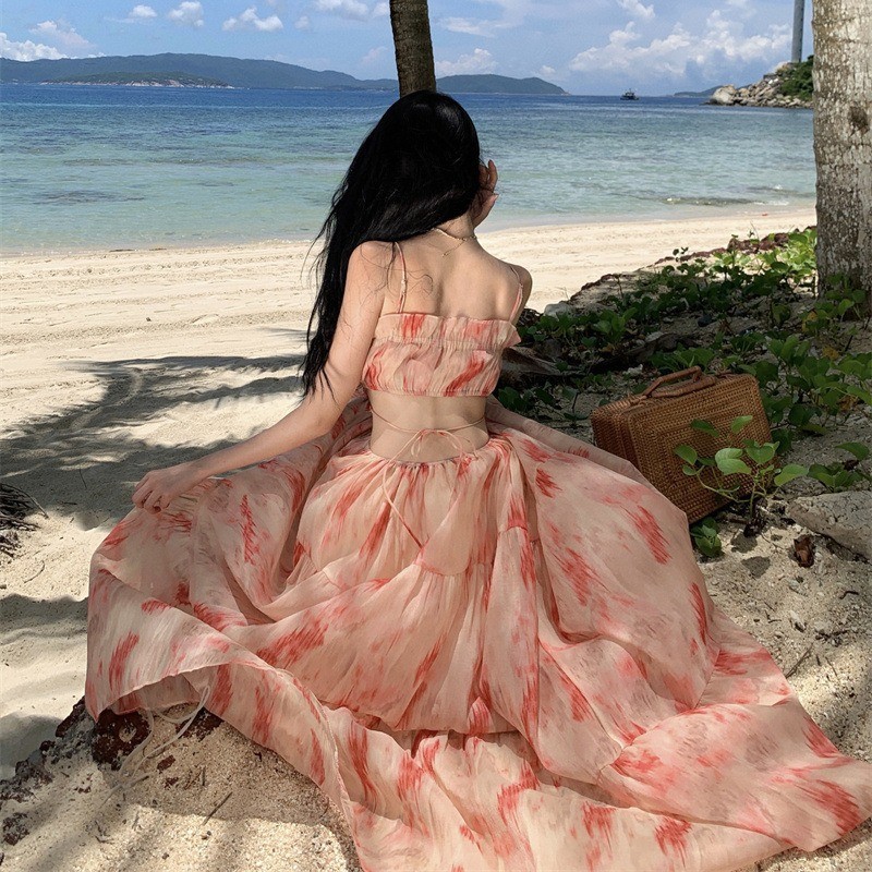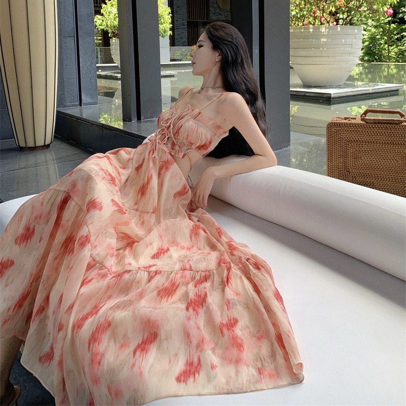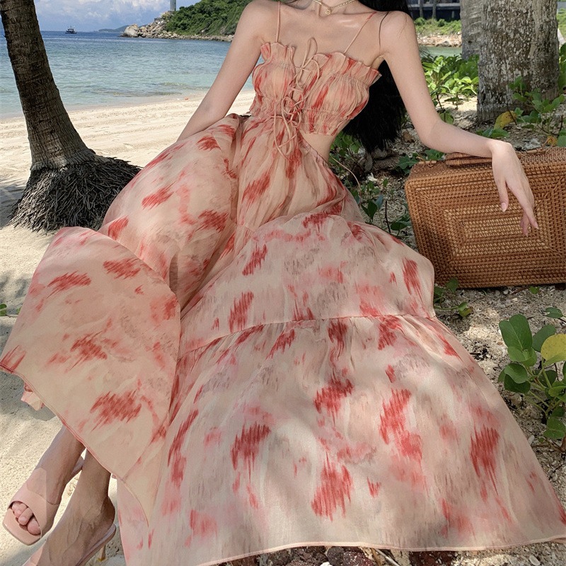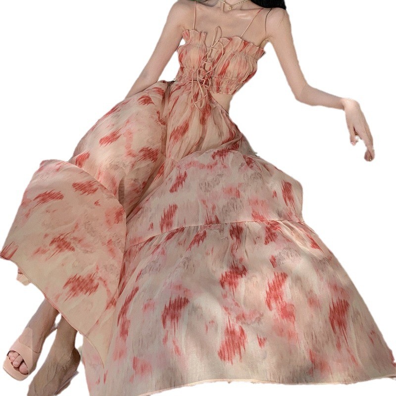 夏季新款高端精致手绘花色超仙高级感显瘦气质连衣裙女长裙