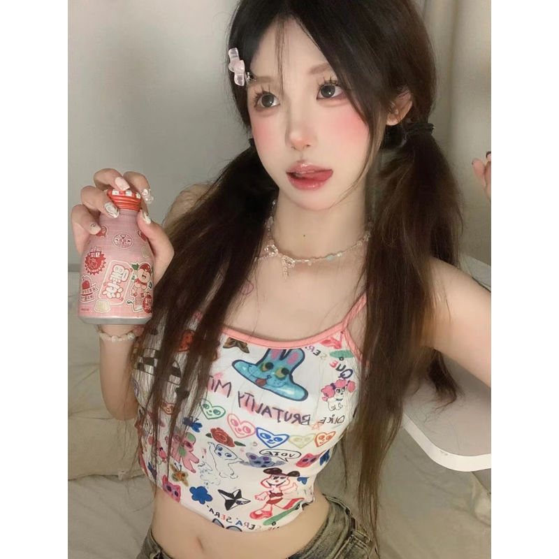 美式涂鸦多巴胺吊带背心女内搭夏季小众设计感短款外穿甜辣妹上衣
