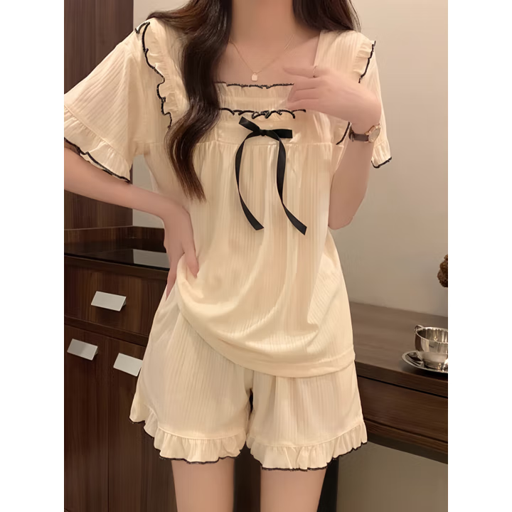 睡衣女士夏季短袖裤新款甜美可爱公主风学生宽松大码