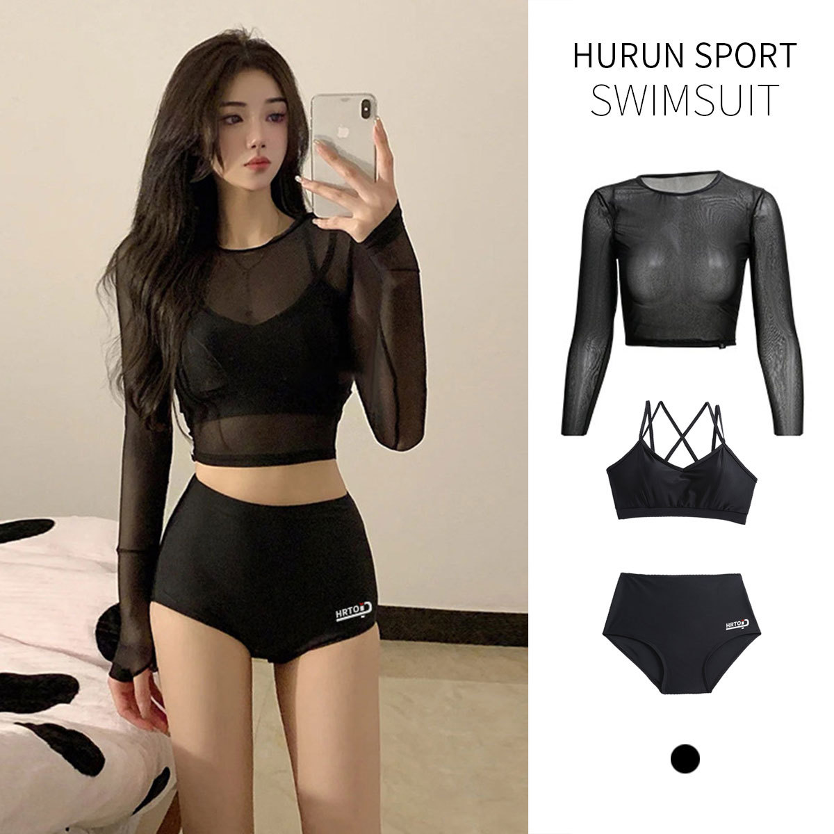 泳衣女吊带罩衫新款韩国ins保守分体三件套运动长袖泡温泉游泳装