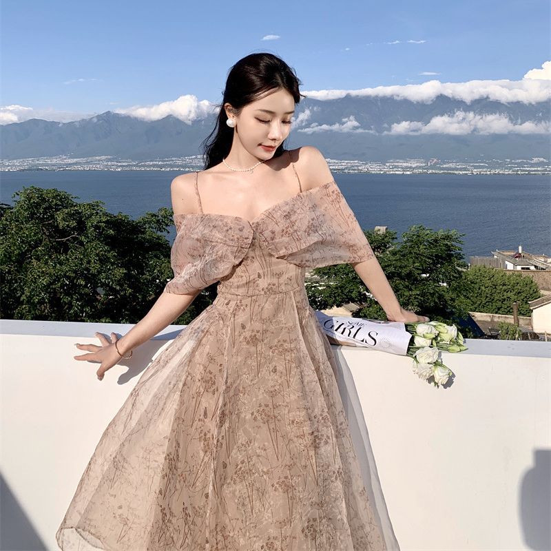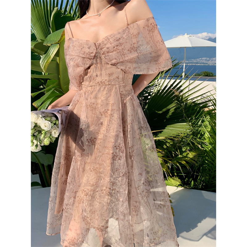 椿山絮语 高级小众设计感法式吊带收腰礼服长连衣裙