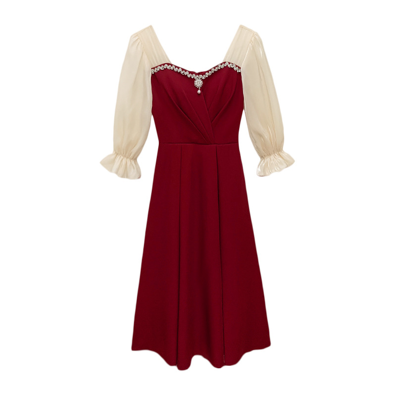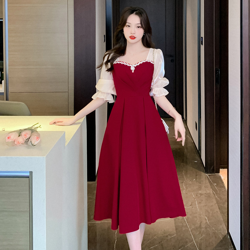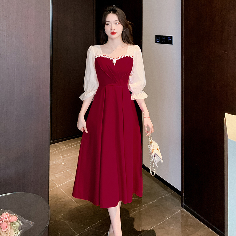 敬酒服新娘酒红色平时可穿订婚礼服小个子新款回门夏季连衣裙