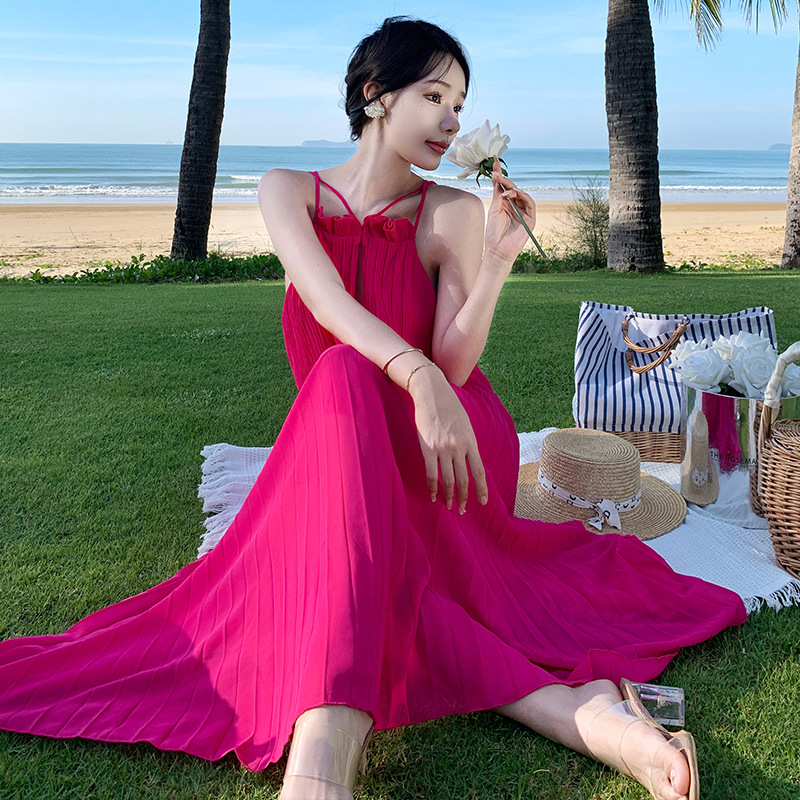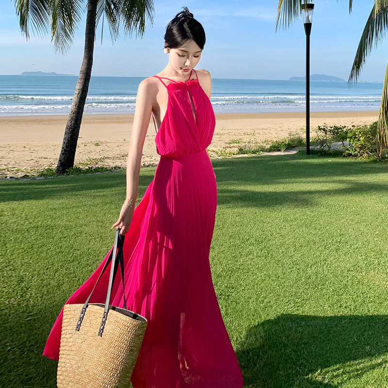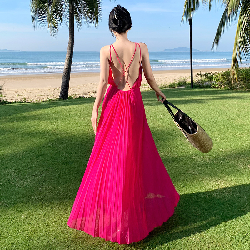 海边度假连衣裙度假ins超火拍照三亚旅行穿搭吊带露背大摆裙
