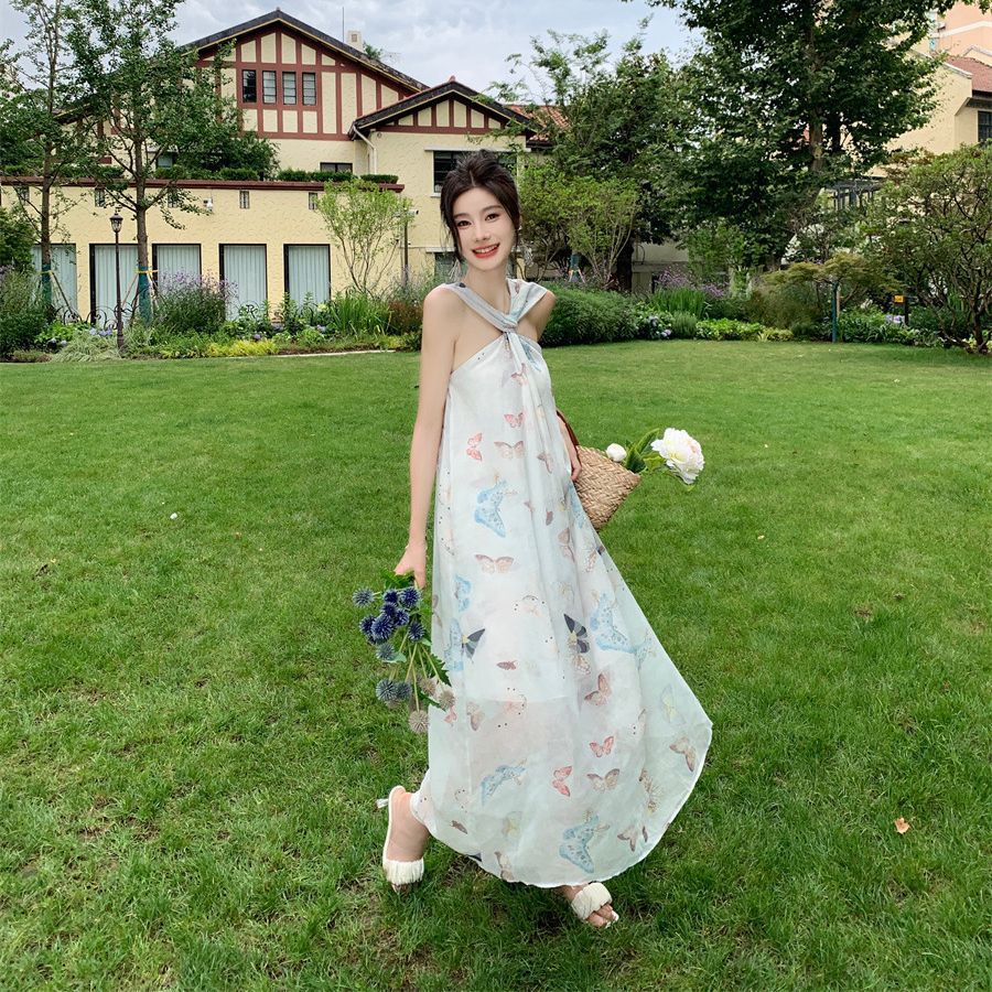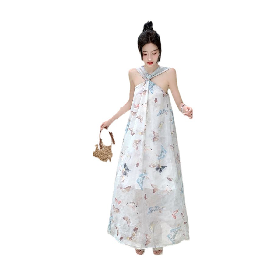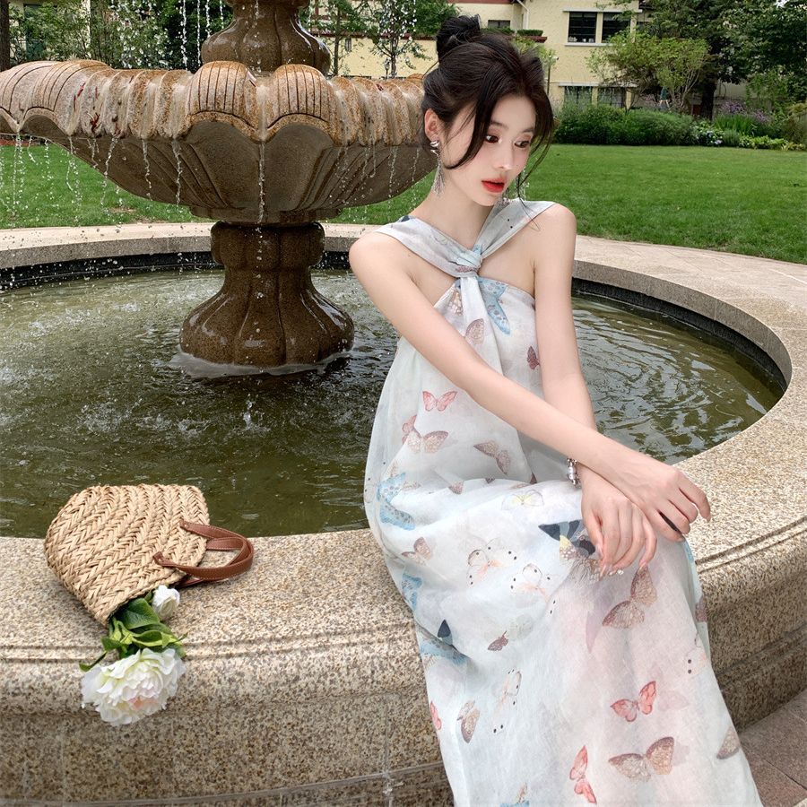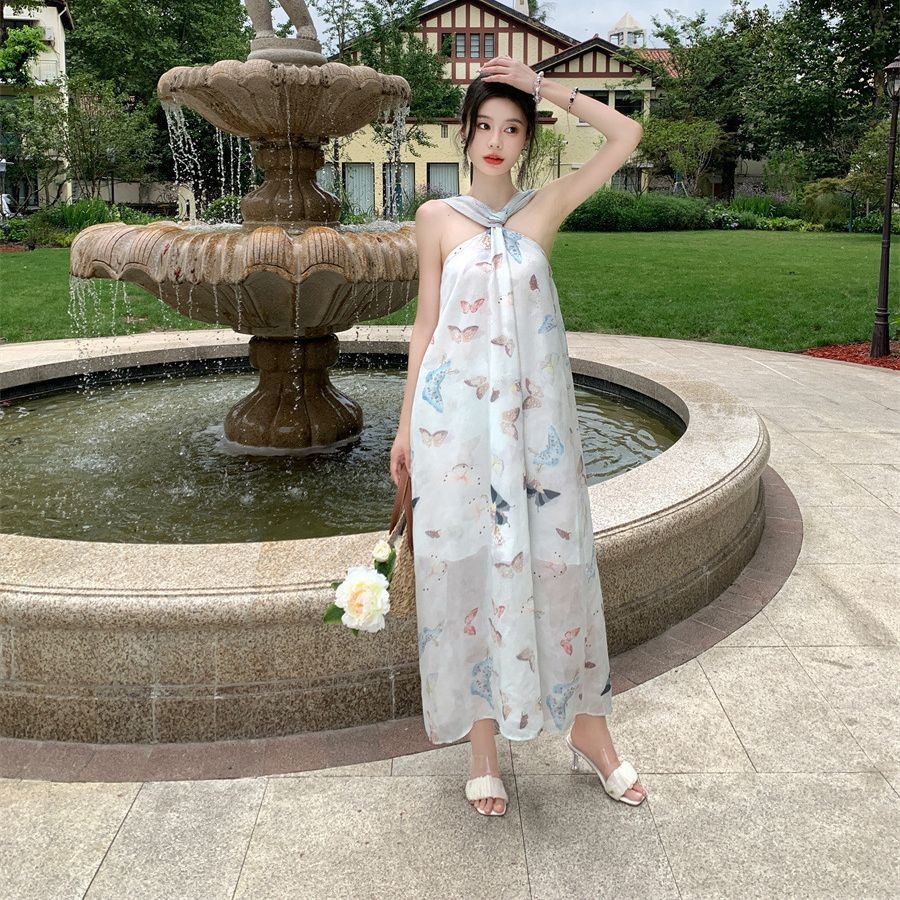 法式独特气质挂脖度假连衣裙女夏超好看吊带裙穿搭小个子裙子