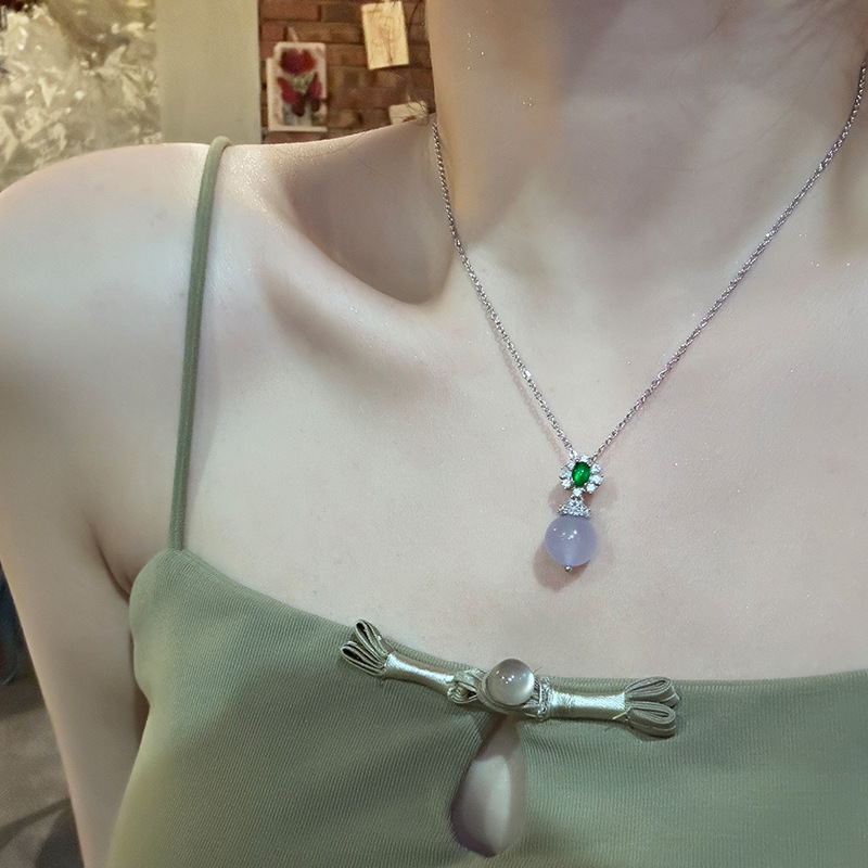 新中式气质锆石花朵紫玉髓项链轻奢高级感颈链锁骨链气质国风颈链