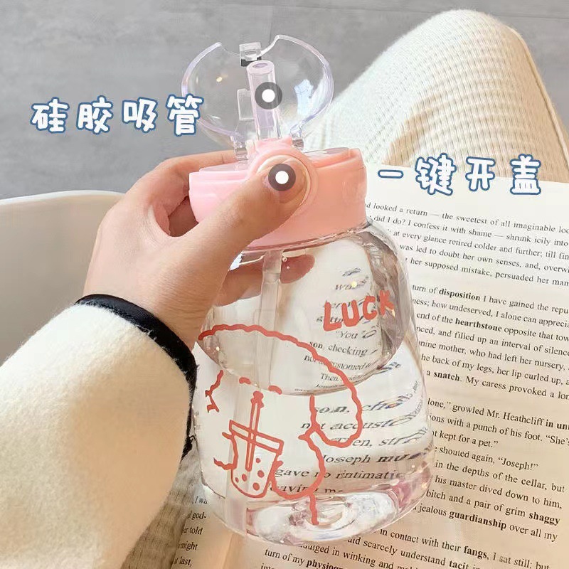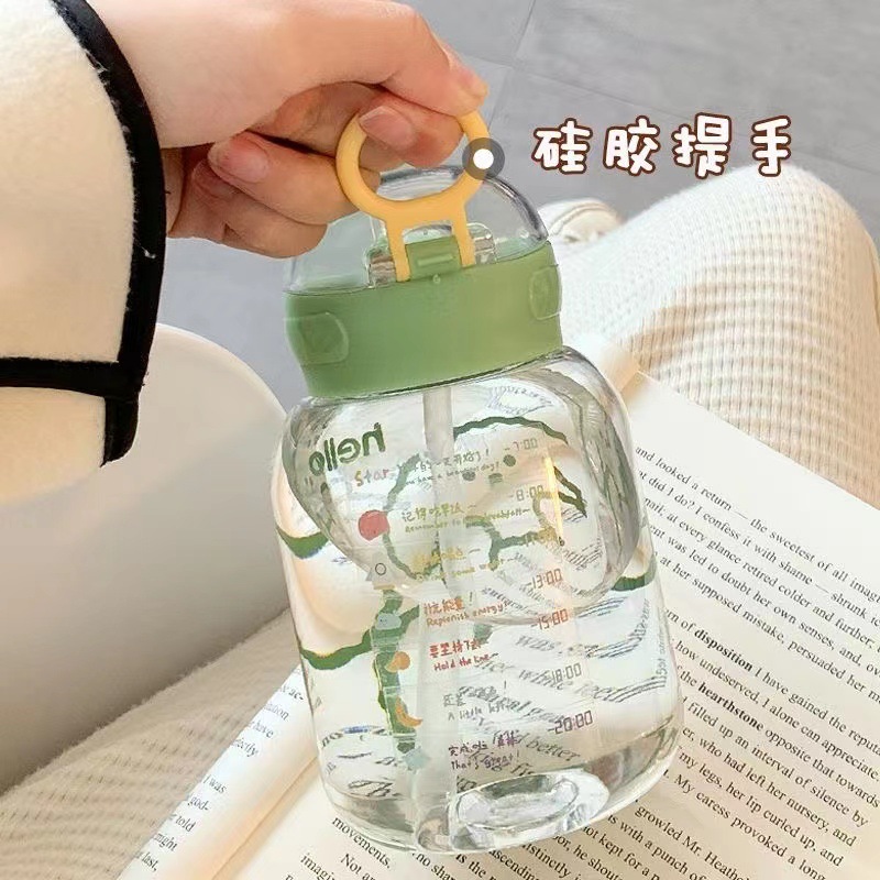 简约杯子ins高颜值塑料吸管水杯耐高温耐摔学生手提爆款日系小众