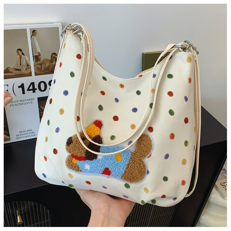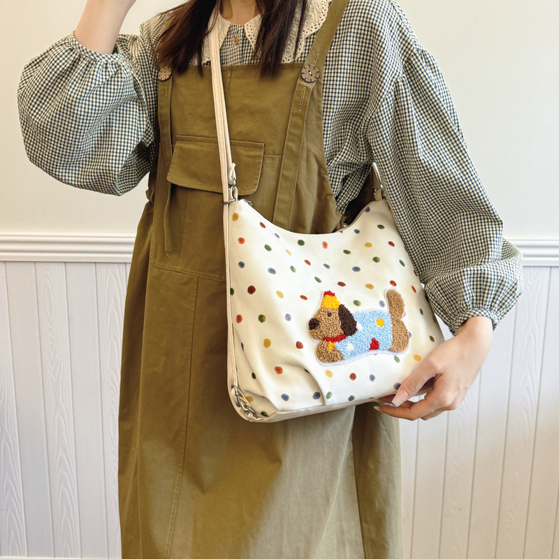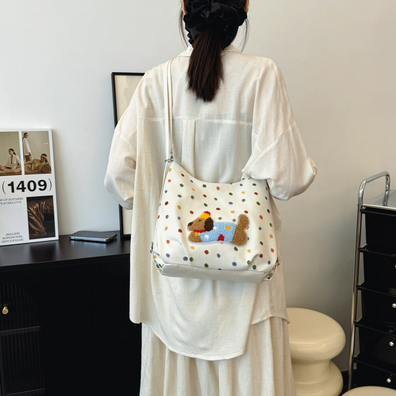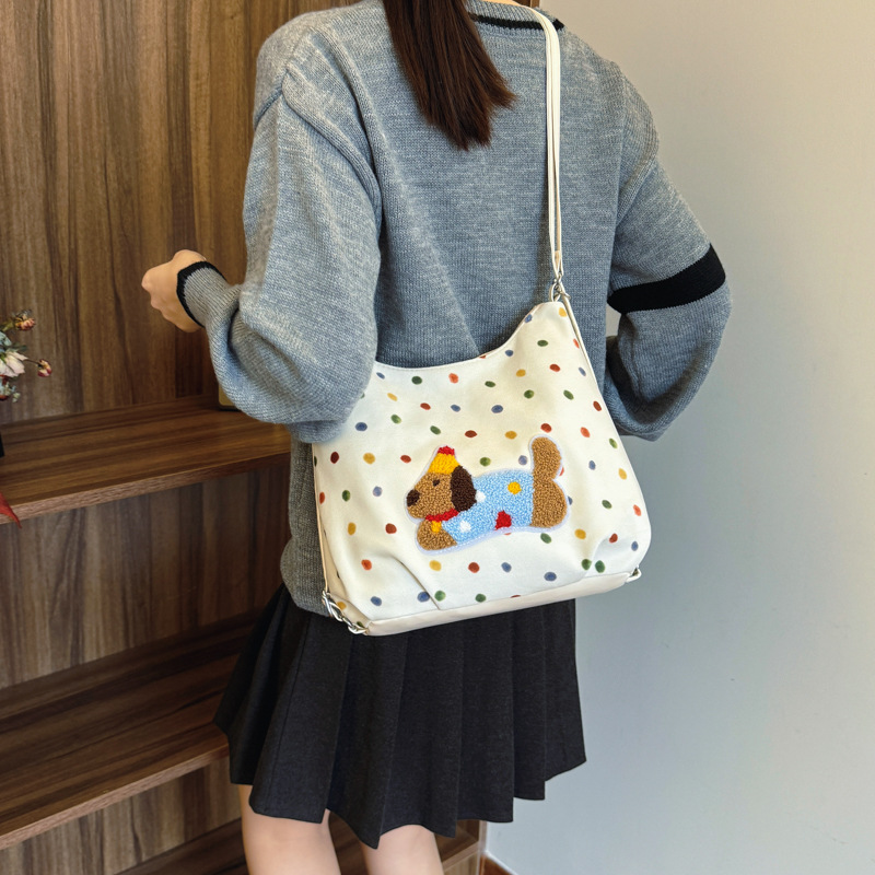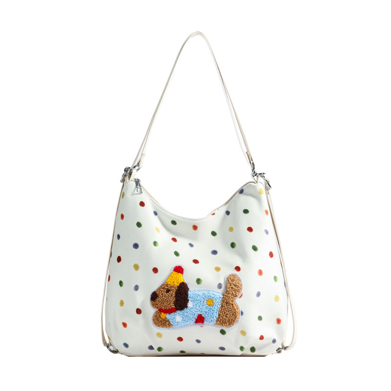 韩版休闲大容量洋气感腋下包女包新款卡通小狗彩色波点双肩包