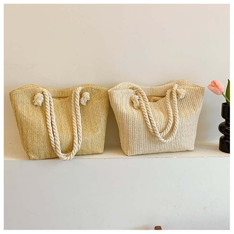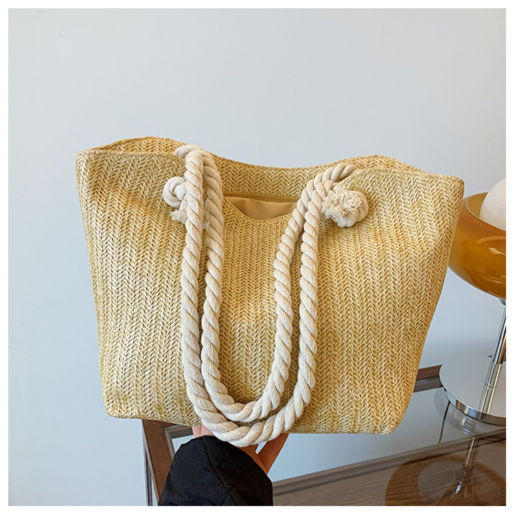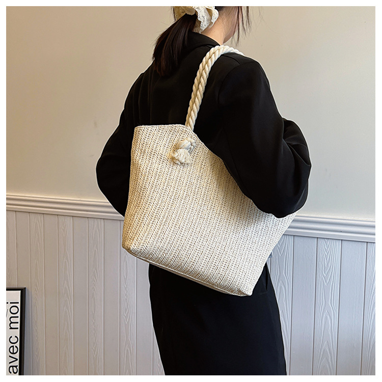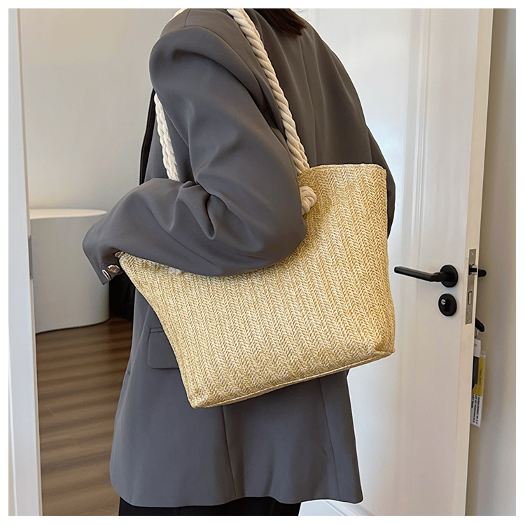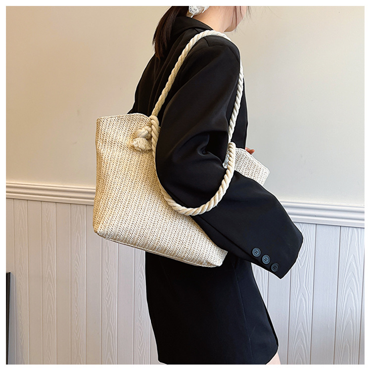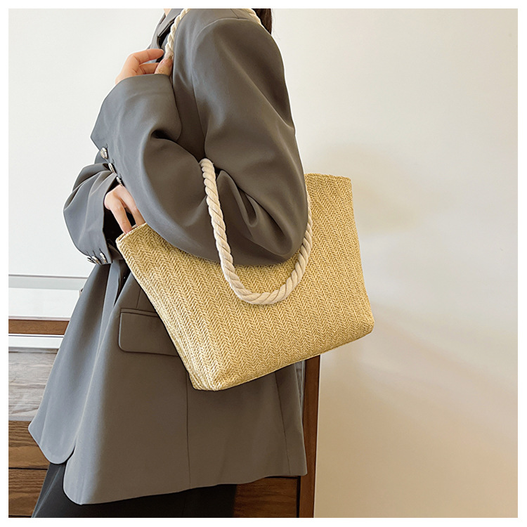 新款潮流时尚草编包大容量单肩托特包小清新腋下编制手提包女