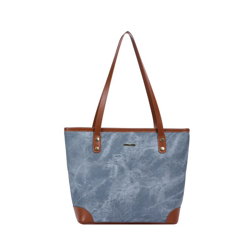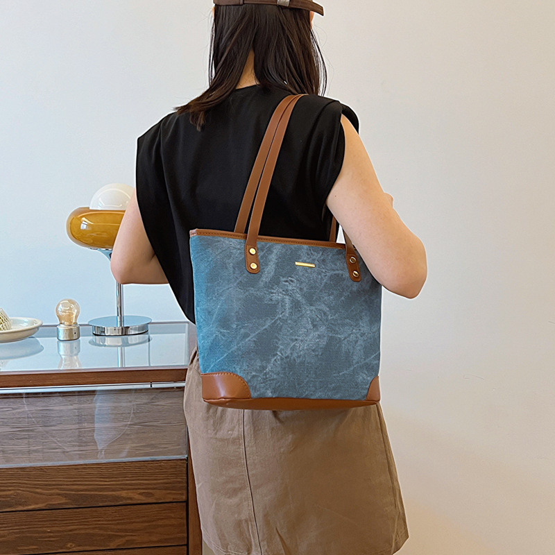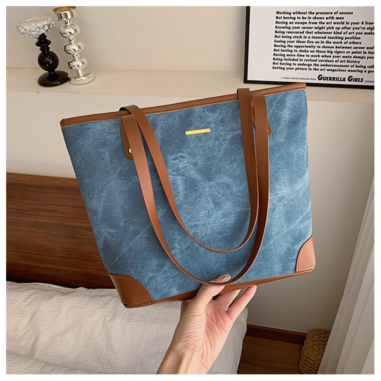 大容量牛仔布包女新款托特包学生上课帆布书包上班通勤单肩包
