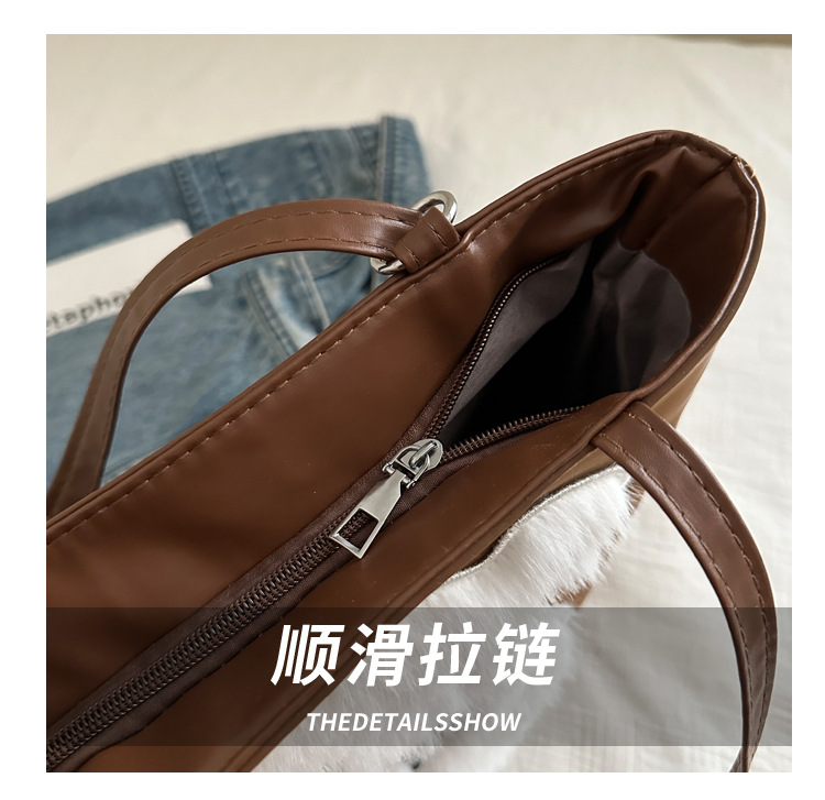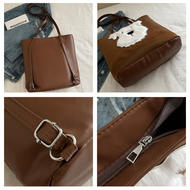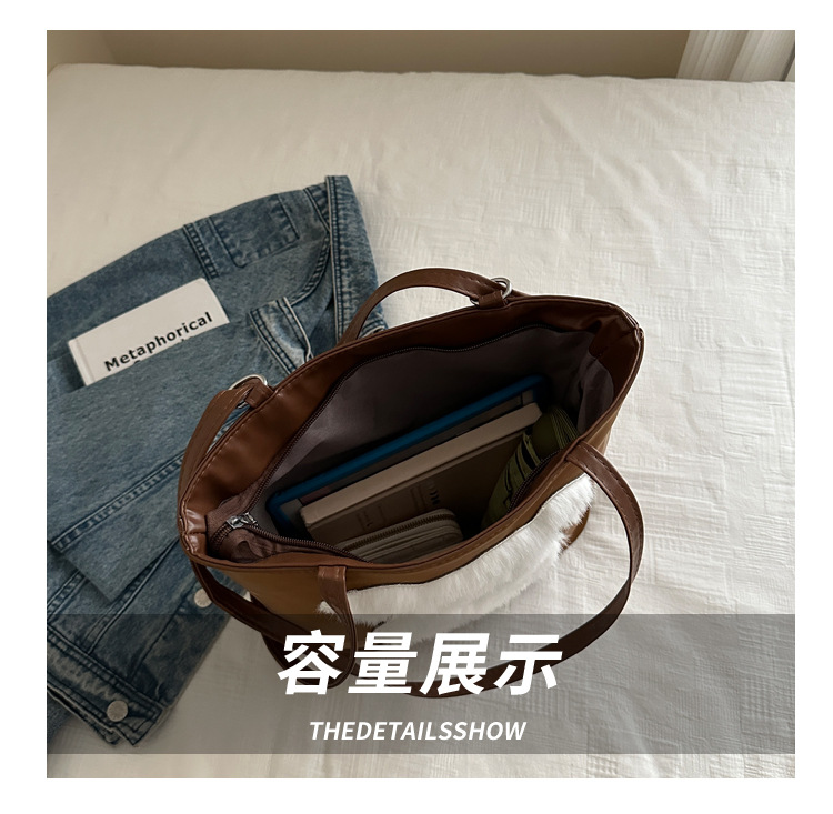 帆布褶皱托特包女大容量新款休闲百搭单肩包大学生上课通勤包