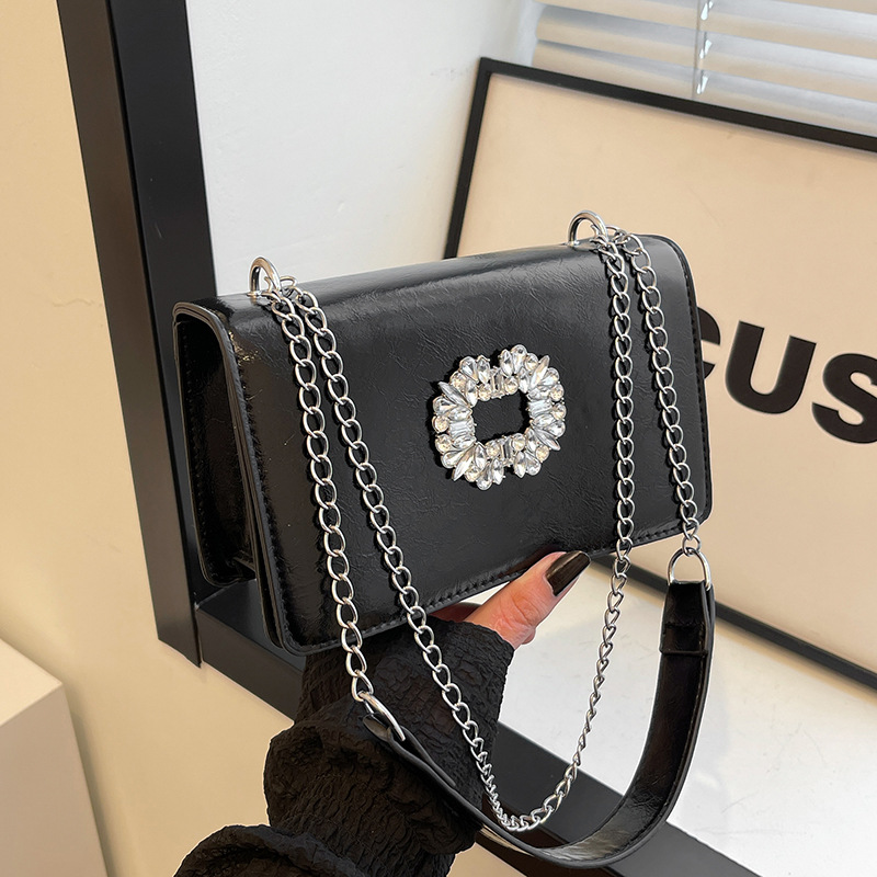 简约时尚水钻小方包包女新款高级感镶钻单肩斜挎包洋气小方包
