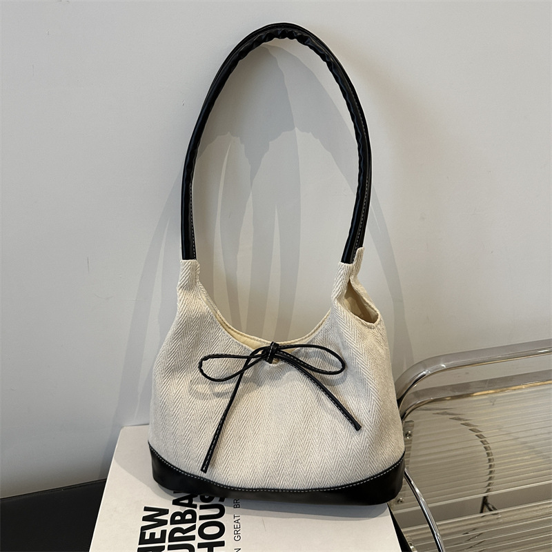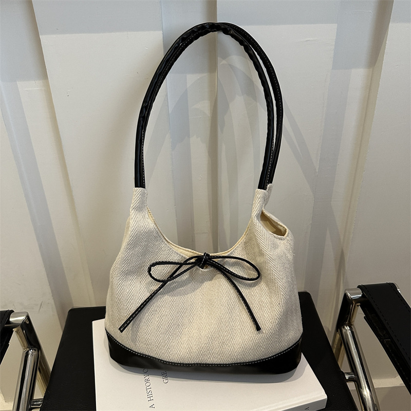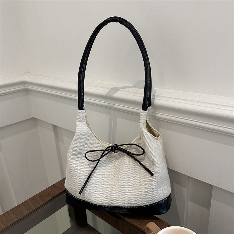 新款帆布纯色手提袋日式上班族简约饭盒包撞色单肩包