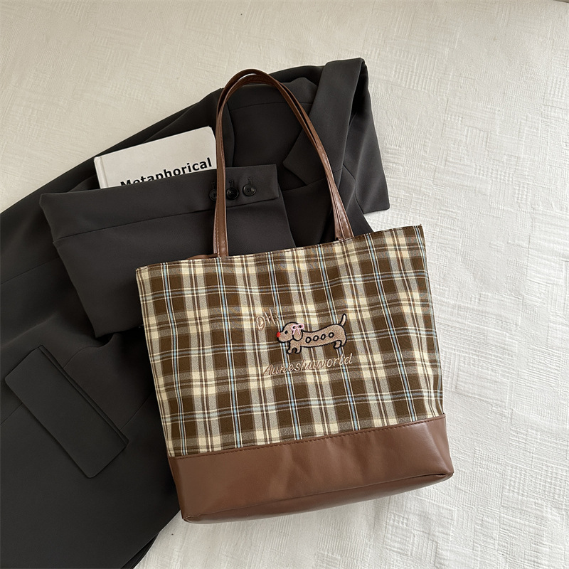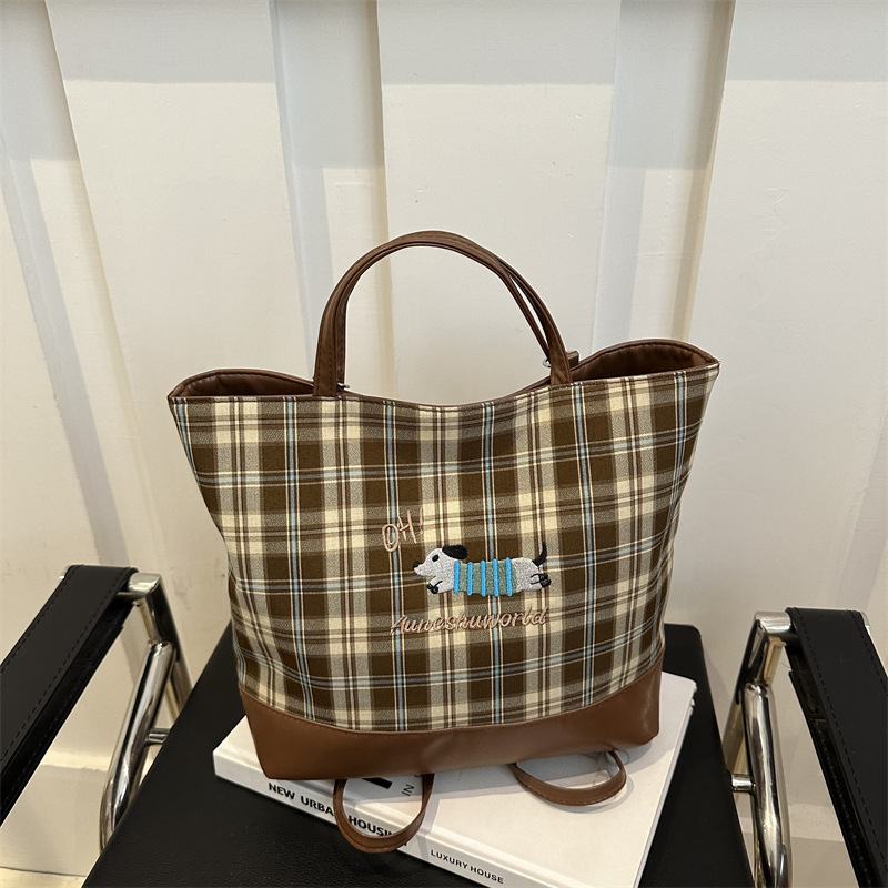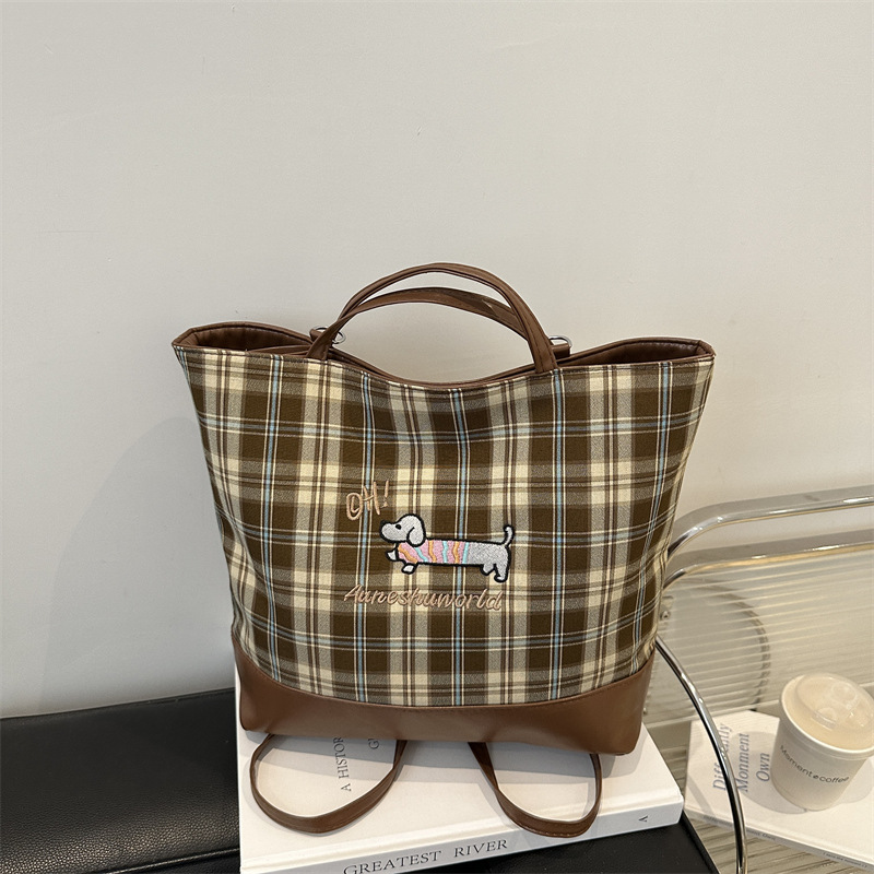 超火大容量包包女新款可爱腊肠狗格子单肩包秋冬百搭托特包