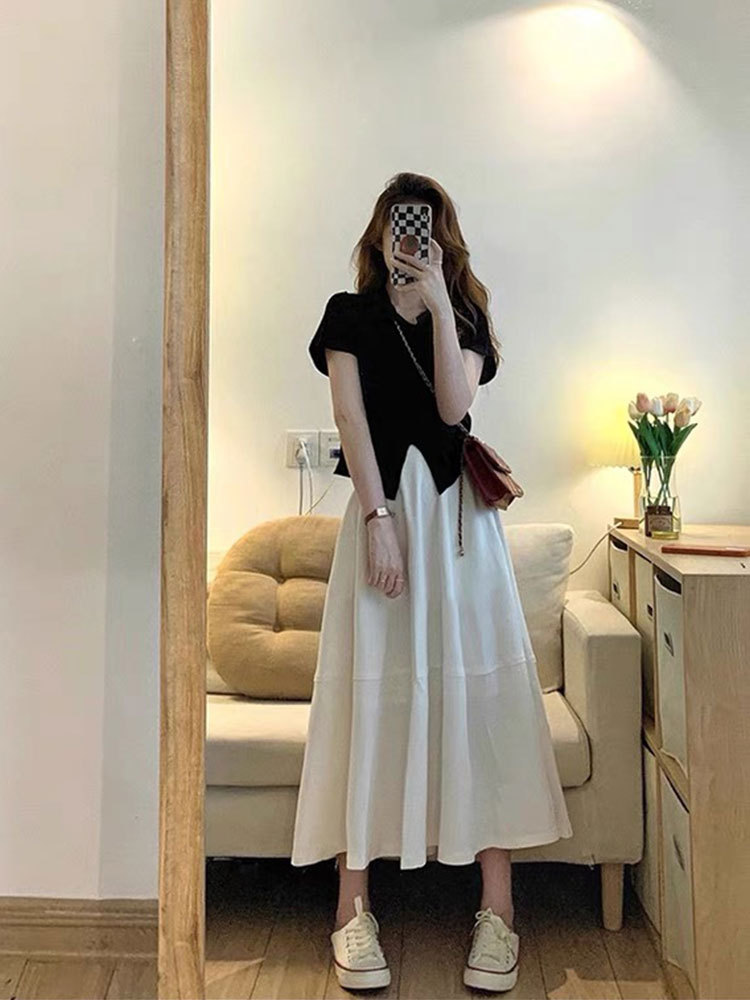 夏装女新款茶系穿搭一整套微胖盐系感连衣裙子两件套装春