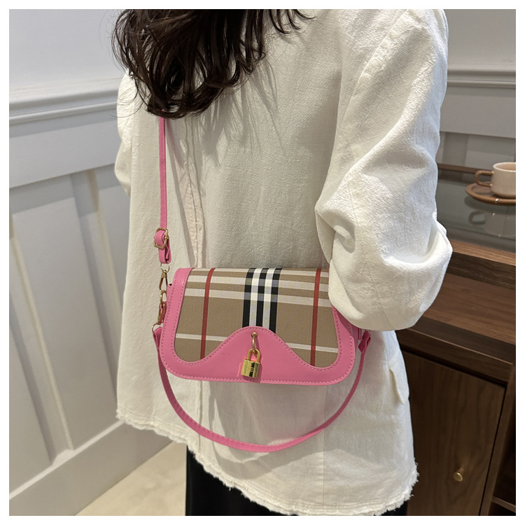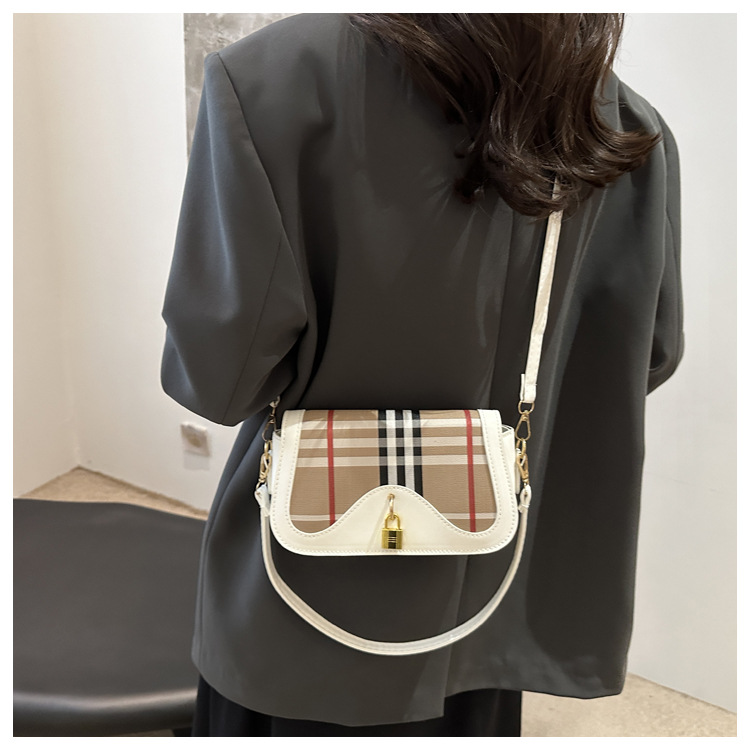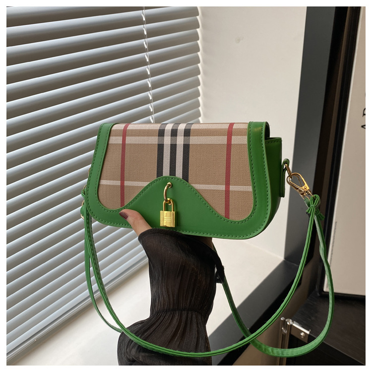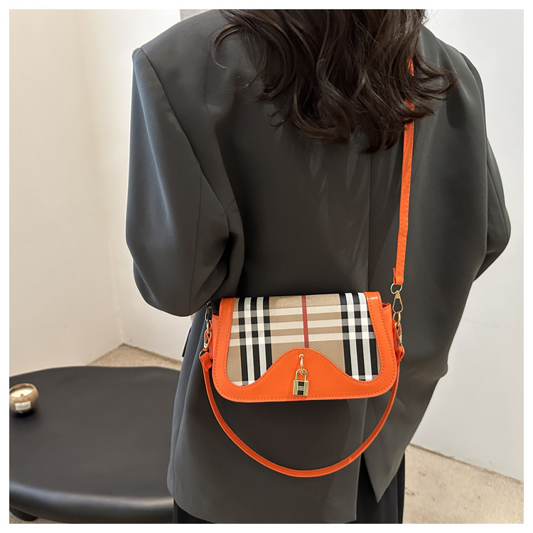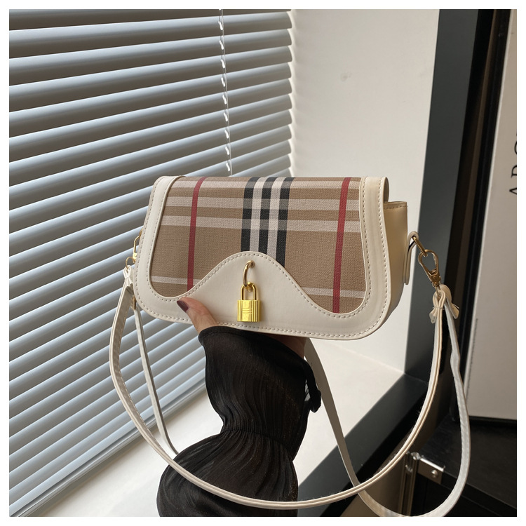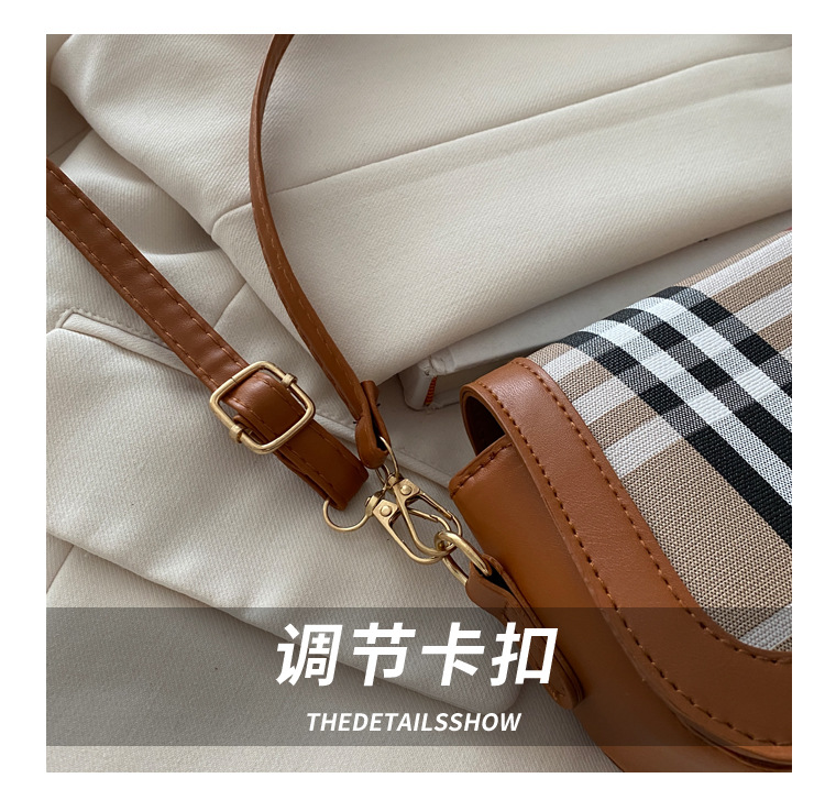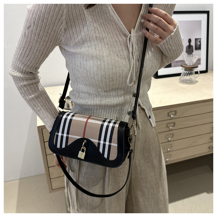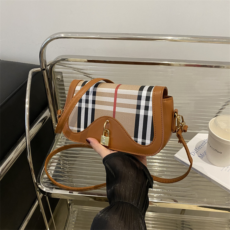 时尚格子手提包包女秋季小众设计质感通勤马鞍包单肩斜挎包