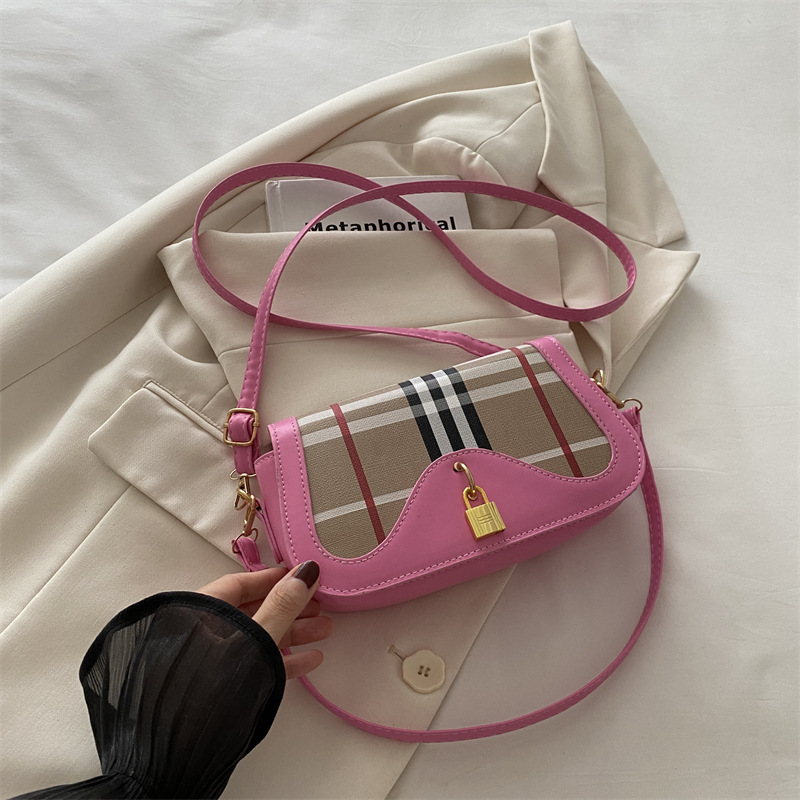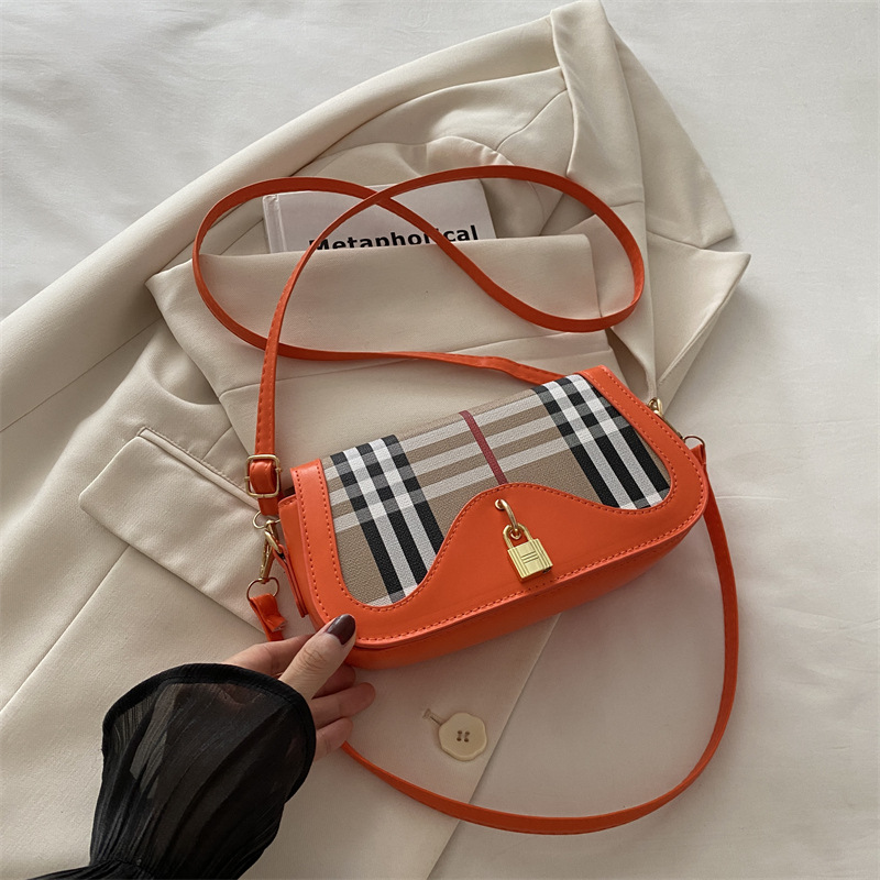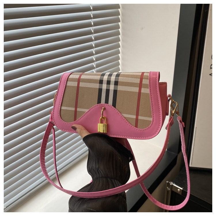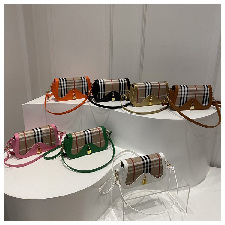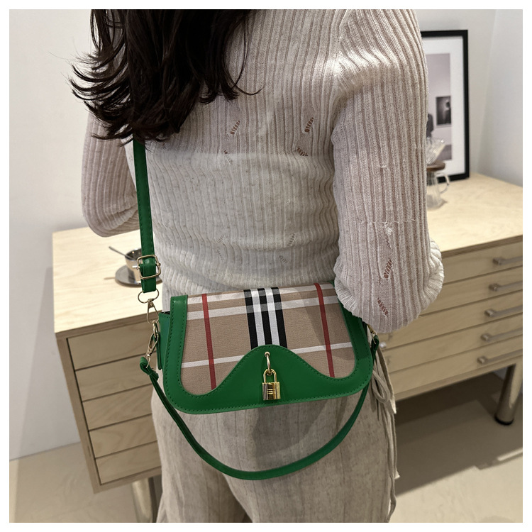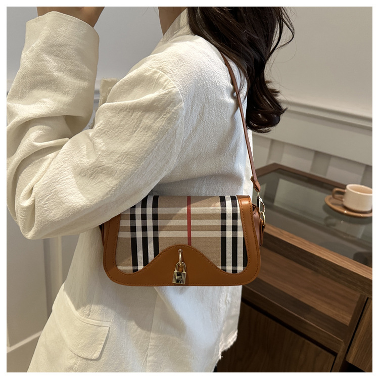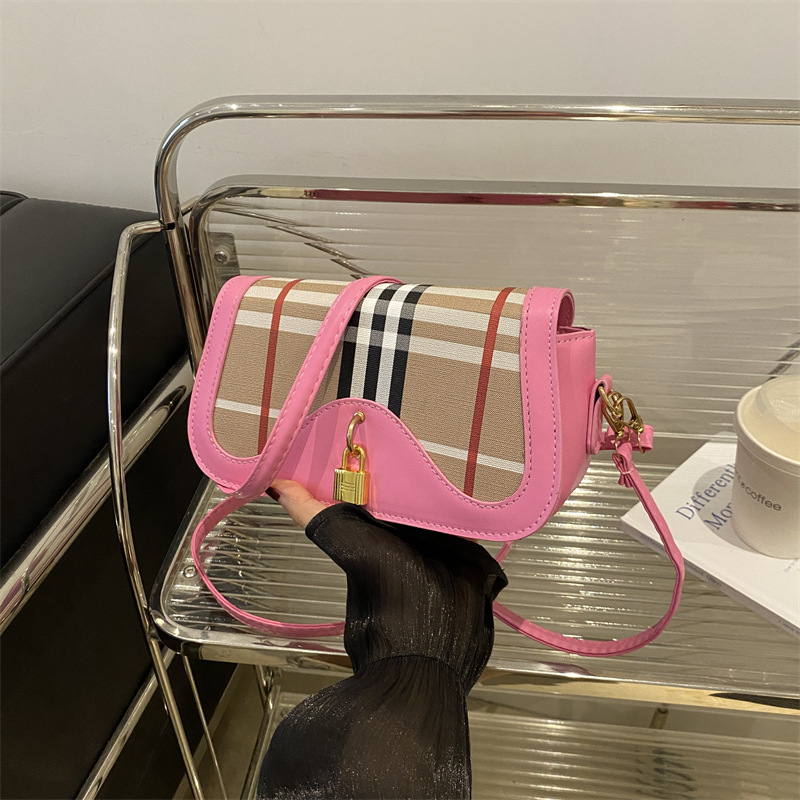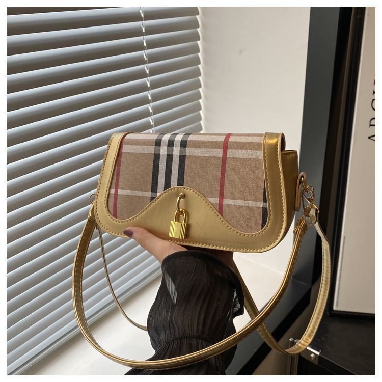 时尚格子手提包包女秋季小众设计质感通勤马鞍包单肩斜挎包