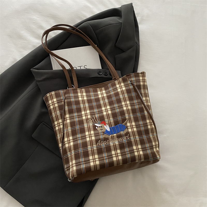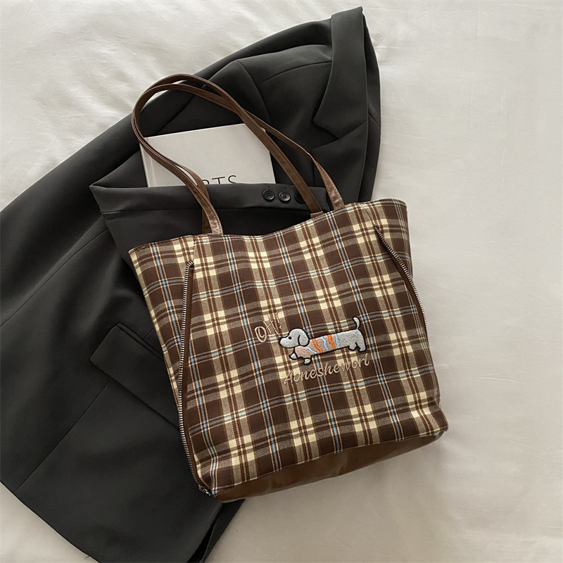 超火大容量包包女士新款可爱腊肠狗格子单肩包秋冬百搭托特包