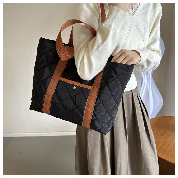 菱格绣线时尚气质手提包秋冬季新款百搭韩版单肩腋下包托特包