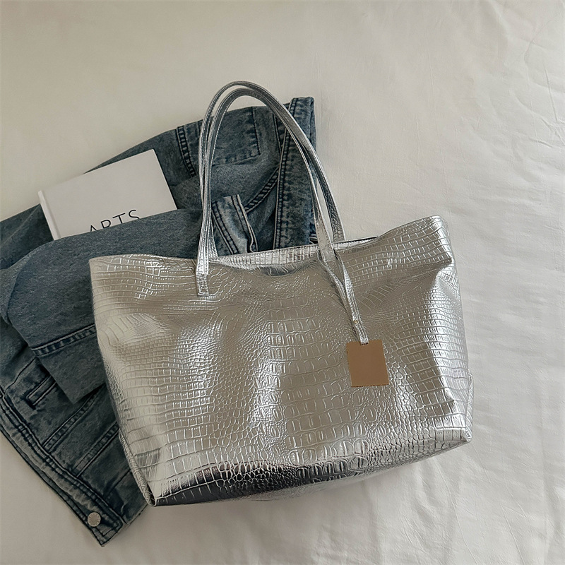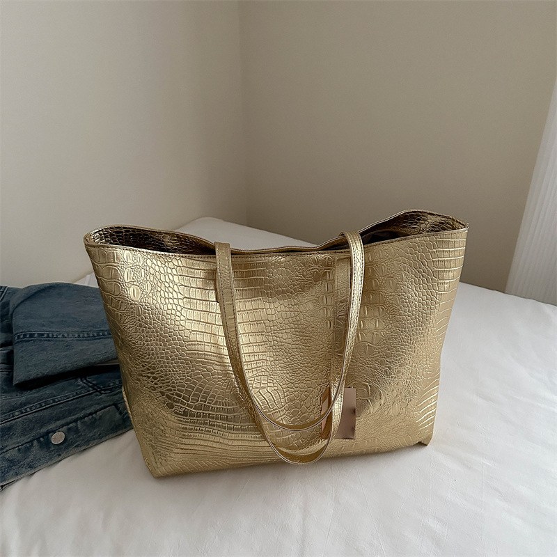 大容量包包女新款高级感简约百搭鳄鱼纹单肩包通勤手提托特包