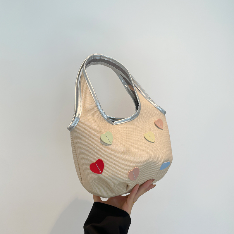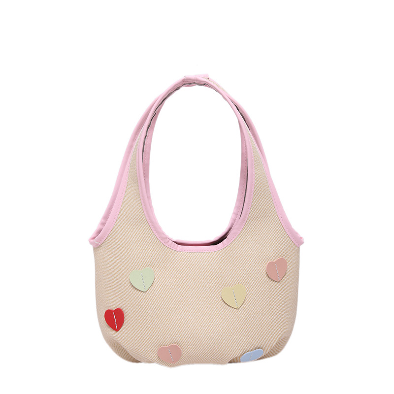 Carebears爱心熊大容量帆布包可爱绗缝刺绣手提包逛街购物斜挎包