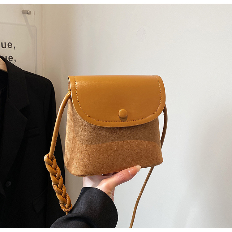 包包秋冬新款复古时尚简约质感拼接水桶包百搭单肩斜挎包女