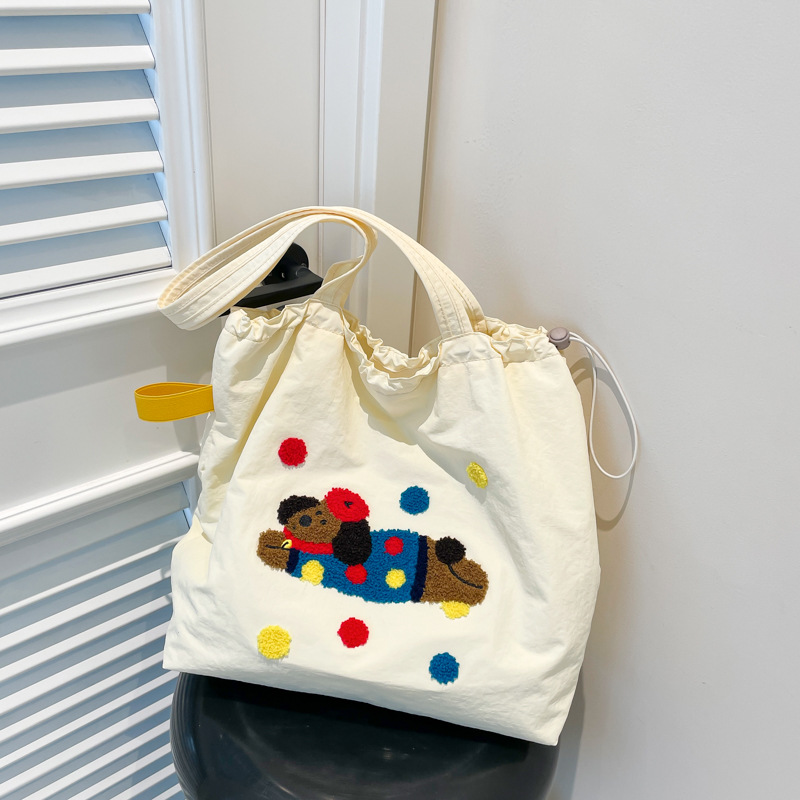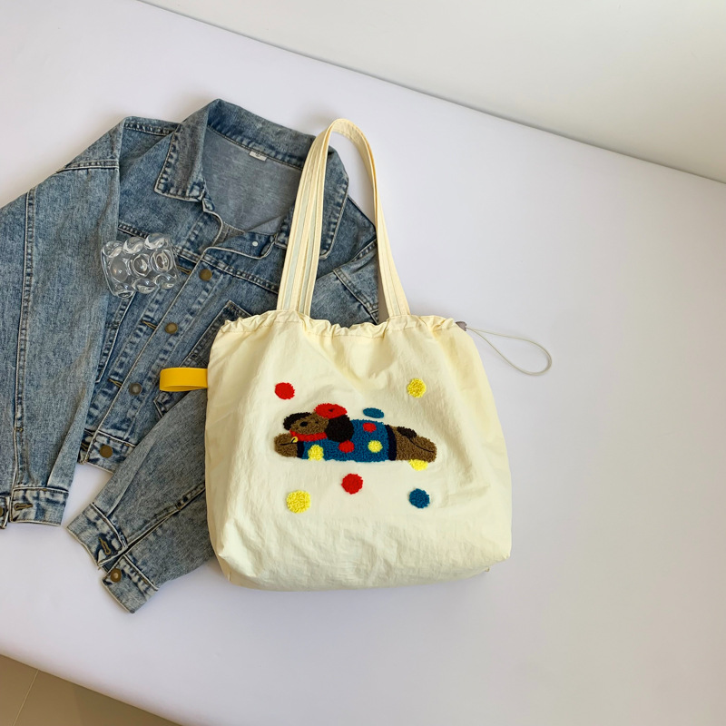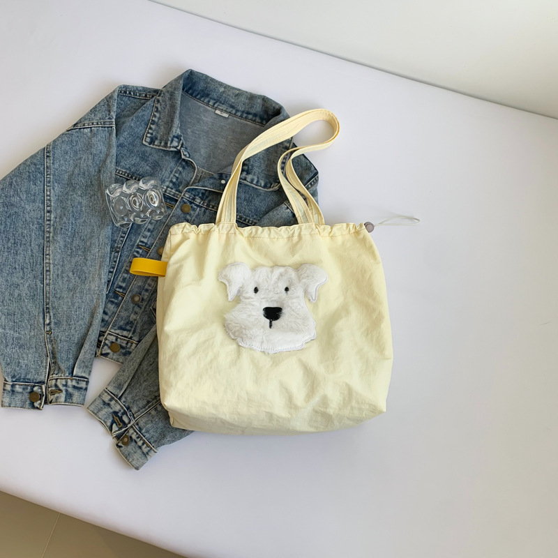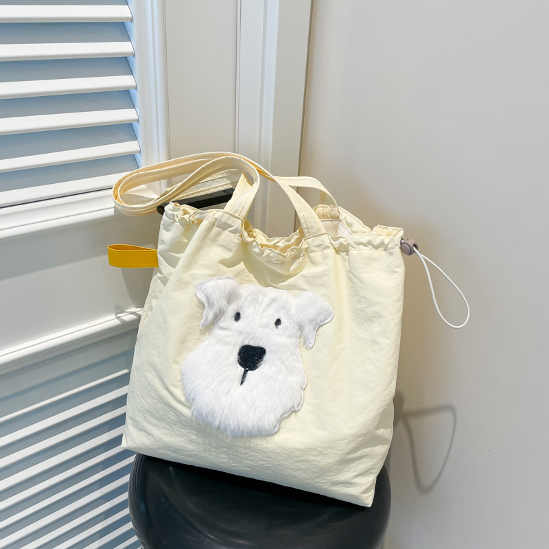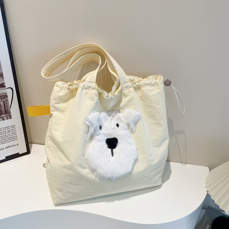 可爱毛绒小狗慵懒风设计感帆布包大容量大学生上课包松弛感通勤包