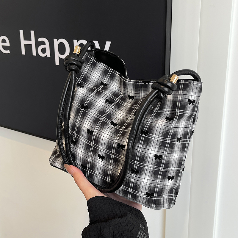 撞色女包新款简约时尚洋气水桶包小众格子设计百搭单肩斜挎包