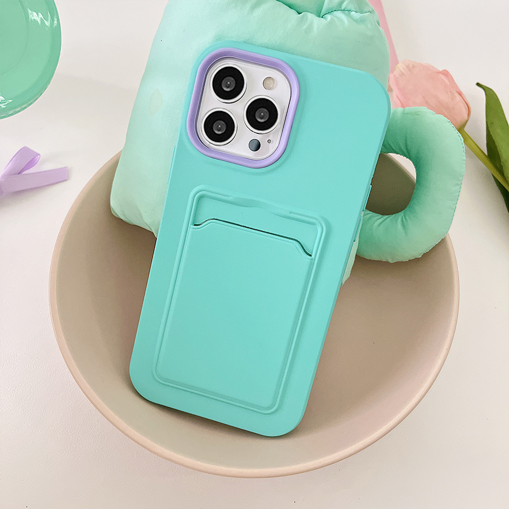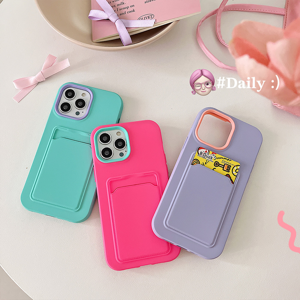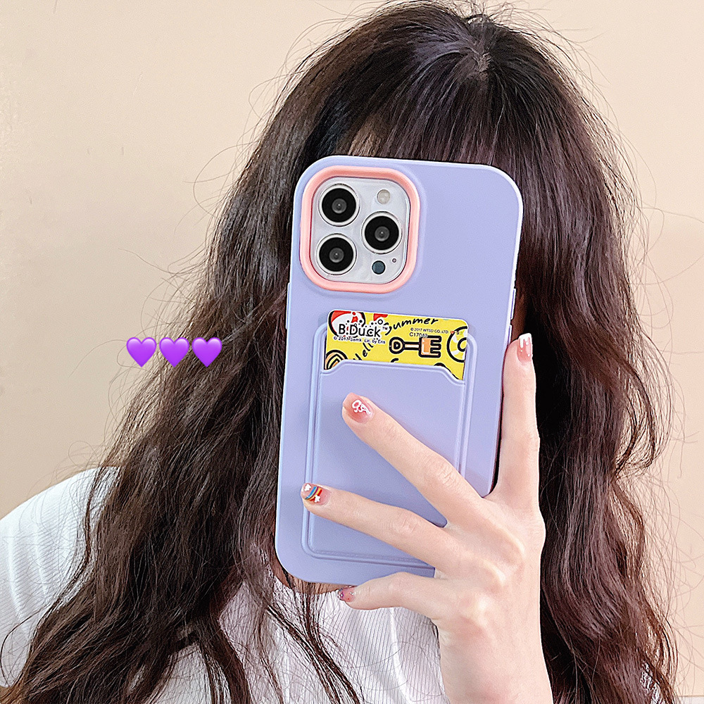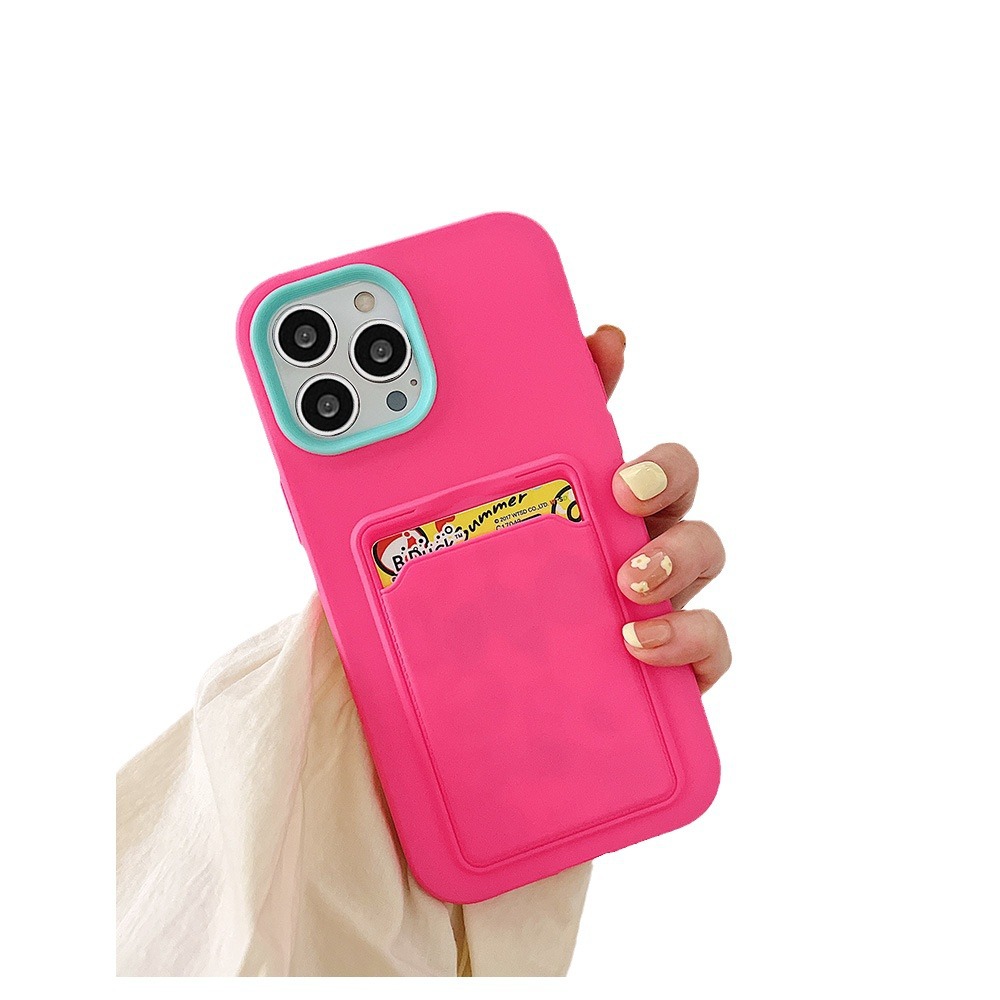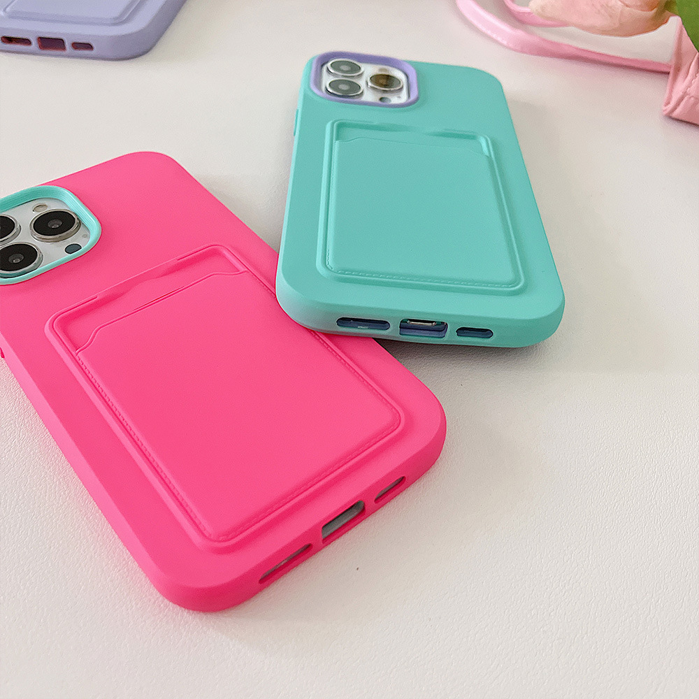 糖果色卡包15promax手机壳11简约玫红色14plus硅胶XR软壳13紫色12