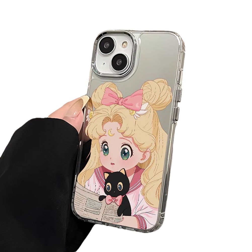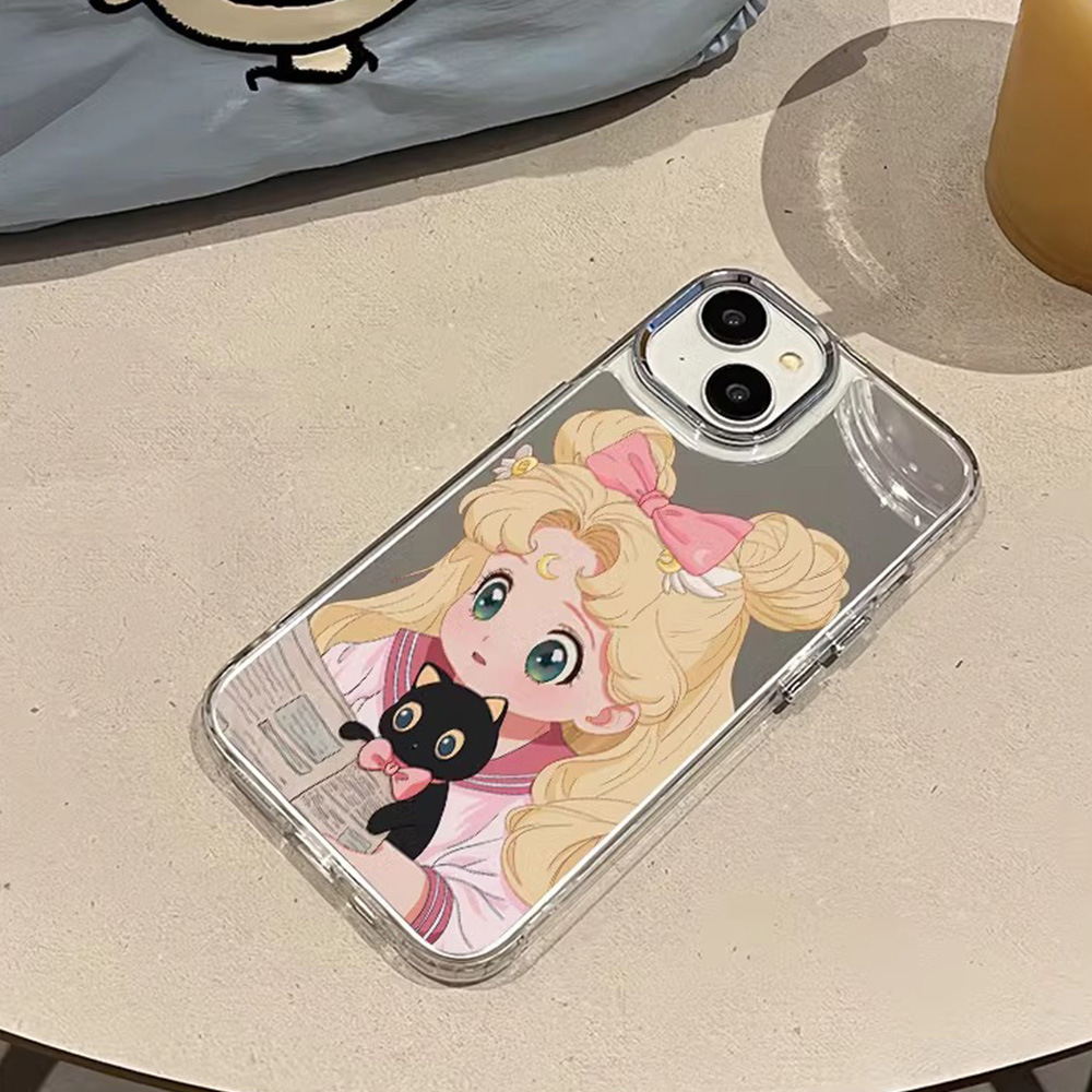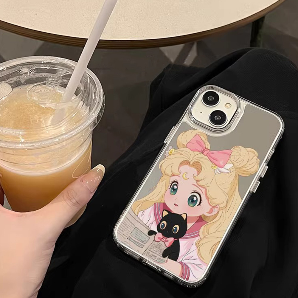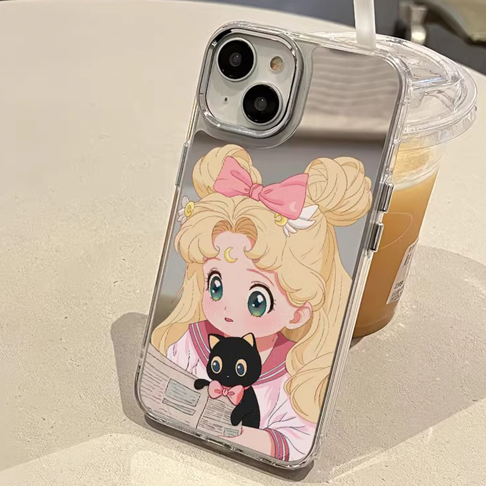 日韩卡通美少女适用iphone15promax镜面手机壳14女生13可爱苹果12