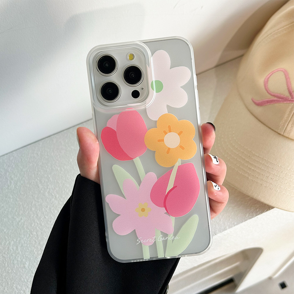 夏天小清新花朵iPhone15promax磨砂透明壳14苹果13手机壳11保护套