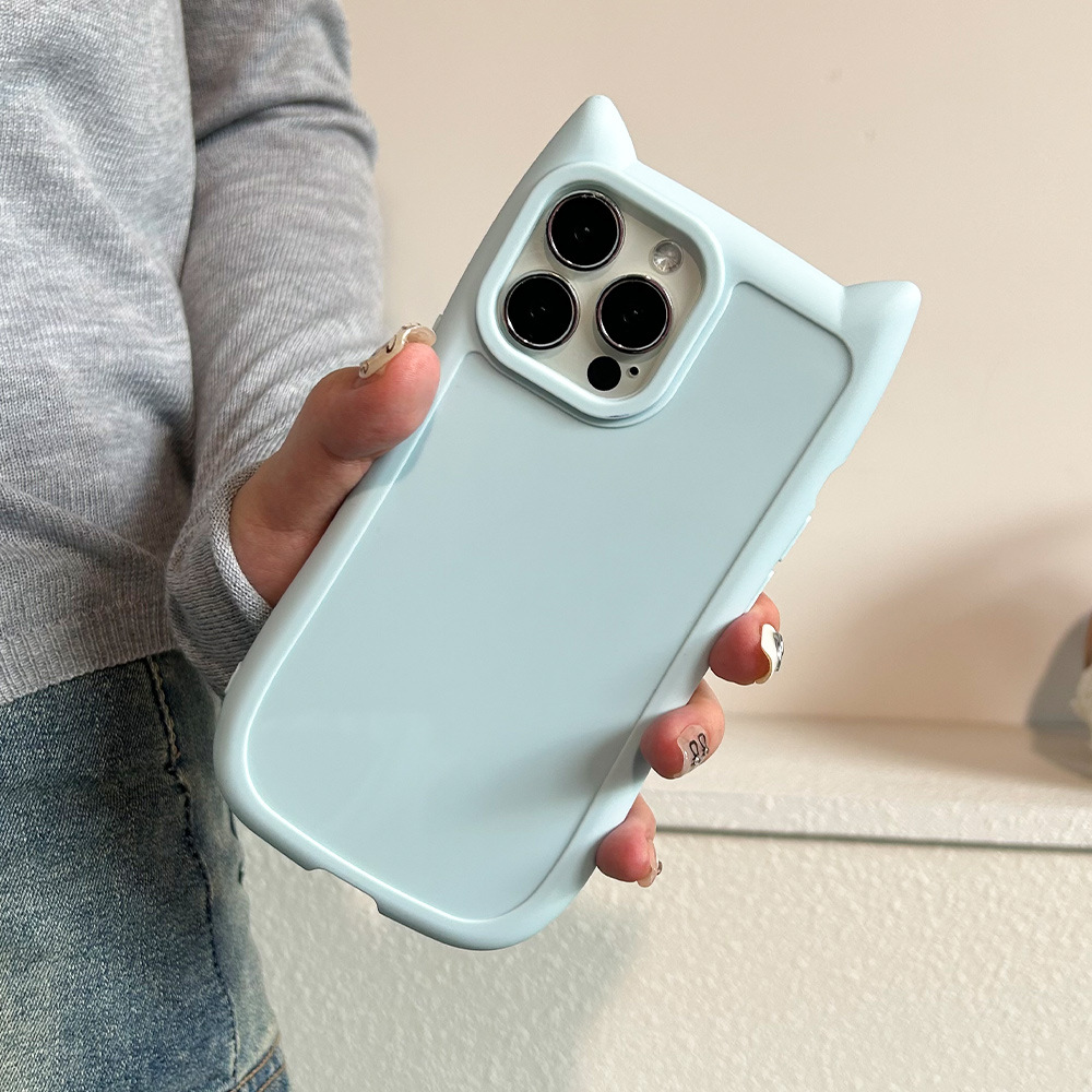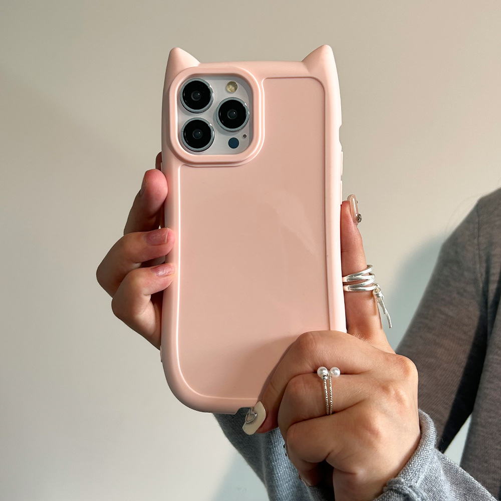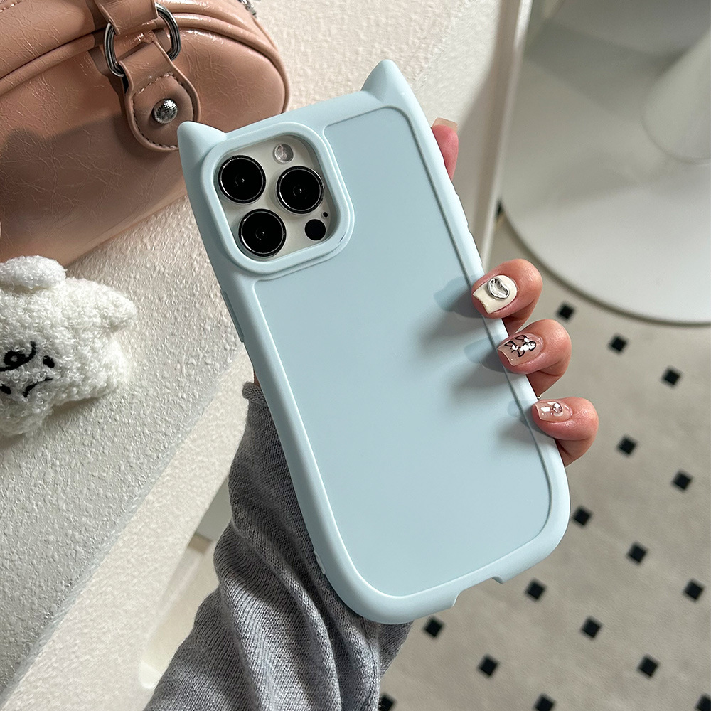 可爱卡通猫耳机15promax软壳14plus手机壳13保护套11大孔气囊防摔