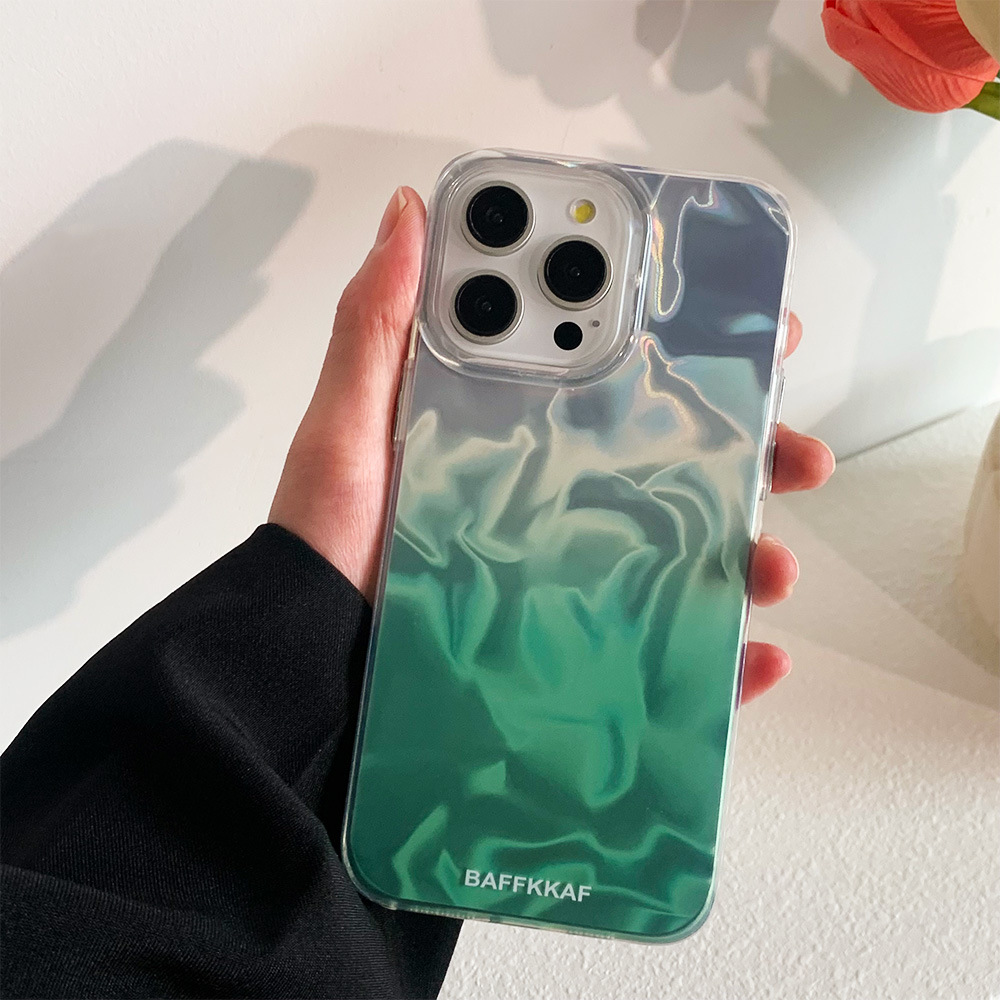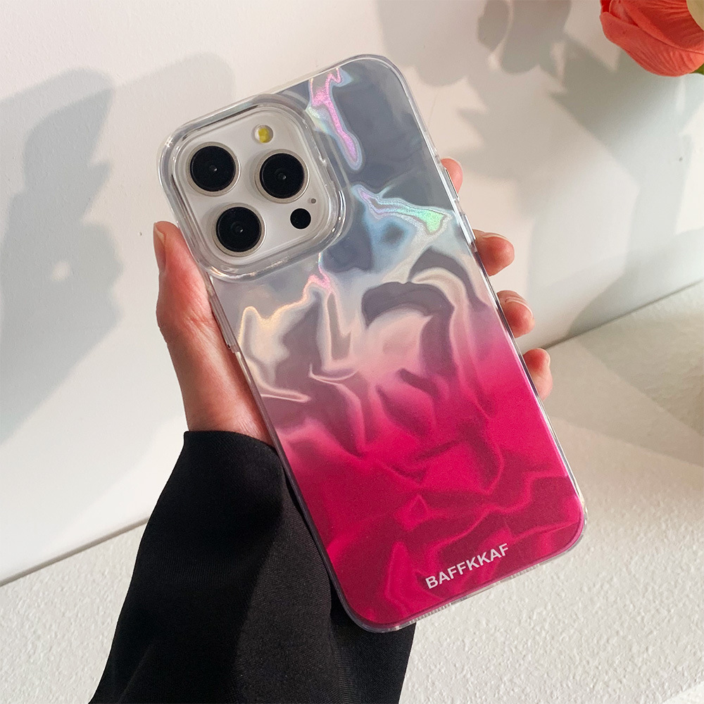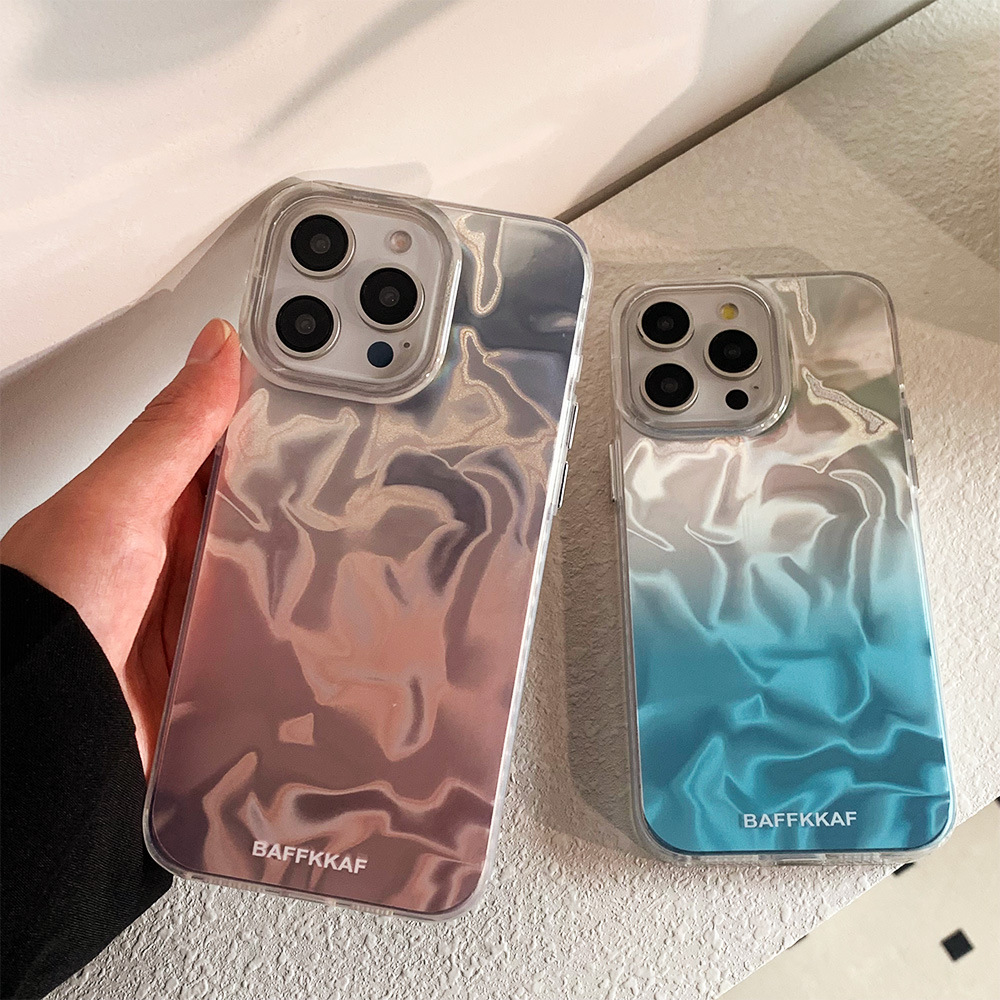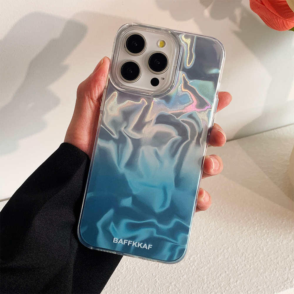 渐变色水波纹iphone15promax手机壳14透明大孔13苹果12保护套软边