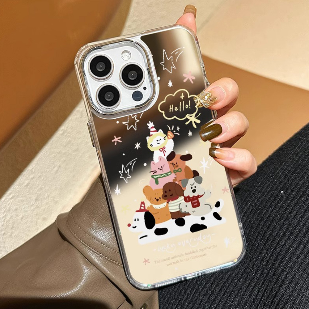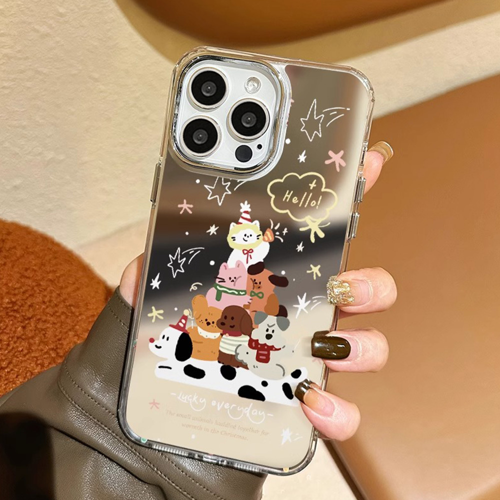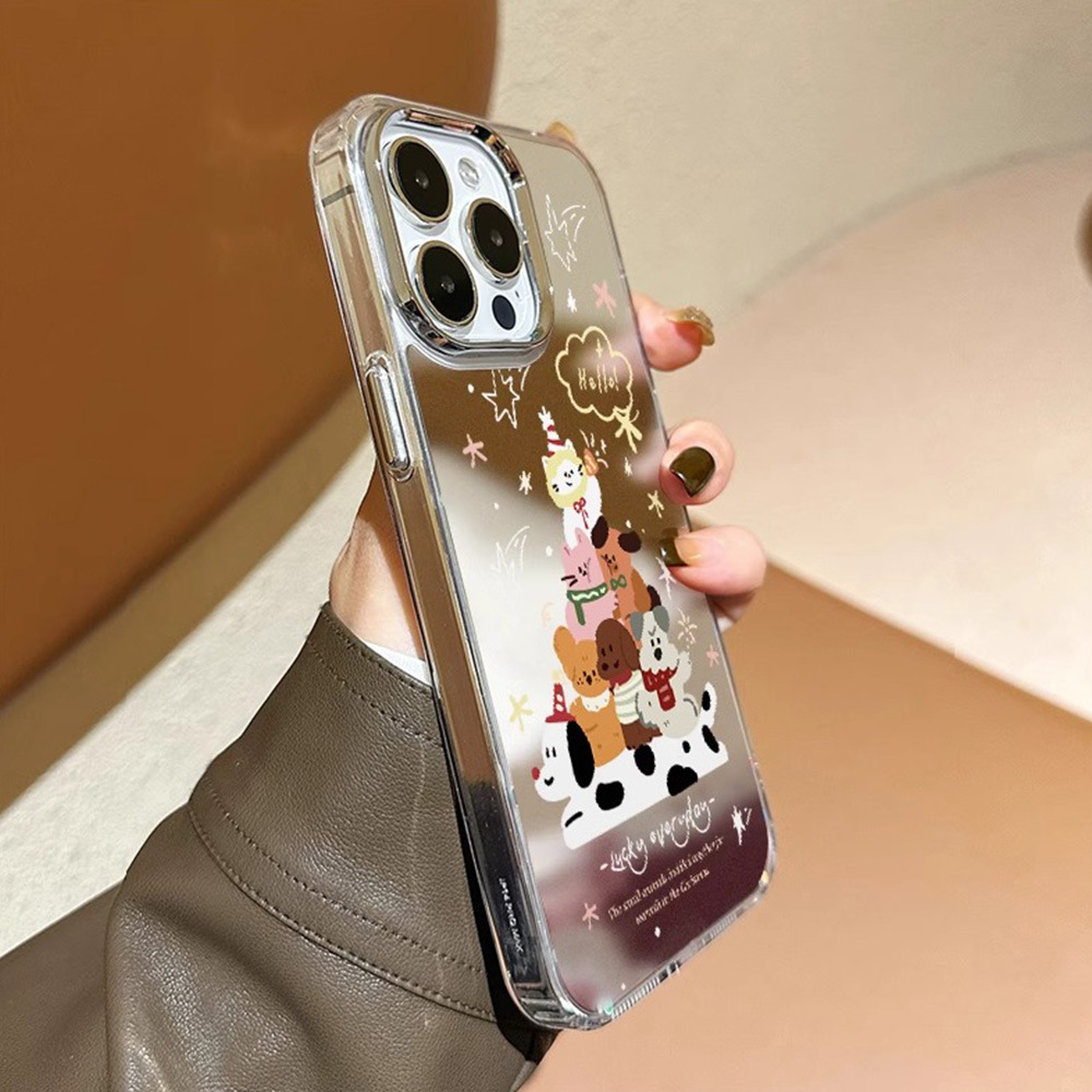 可爱动物镜面手机壳苹果15ProMax手机壳新款iPhone14全包防摔12卡