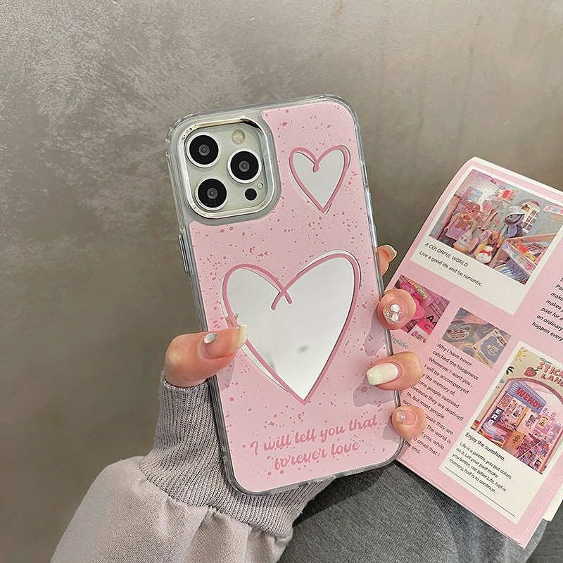 泼墨少女粉爱心苹果15promax手机壳带链条iPhone14新款13防摔11女