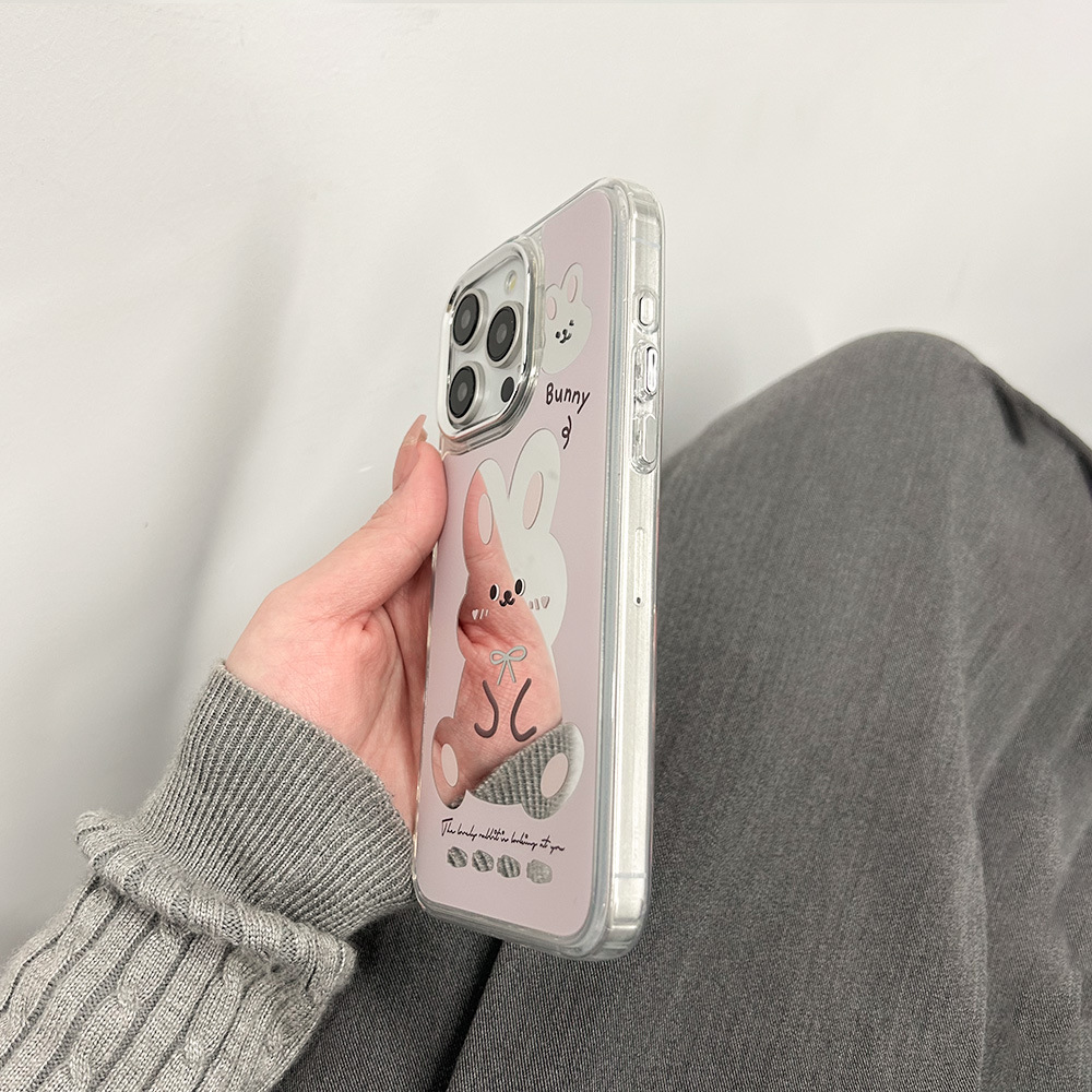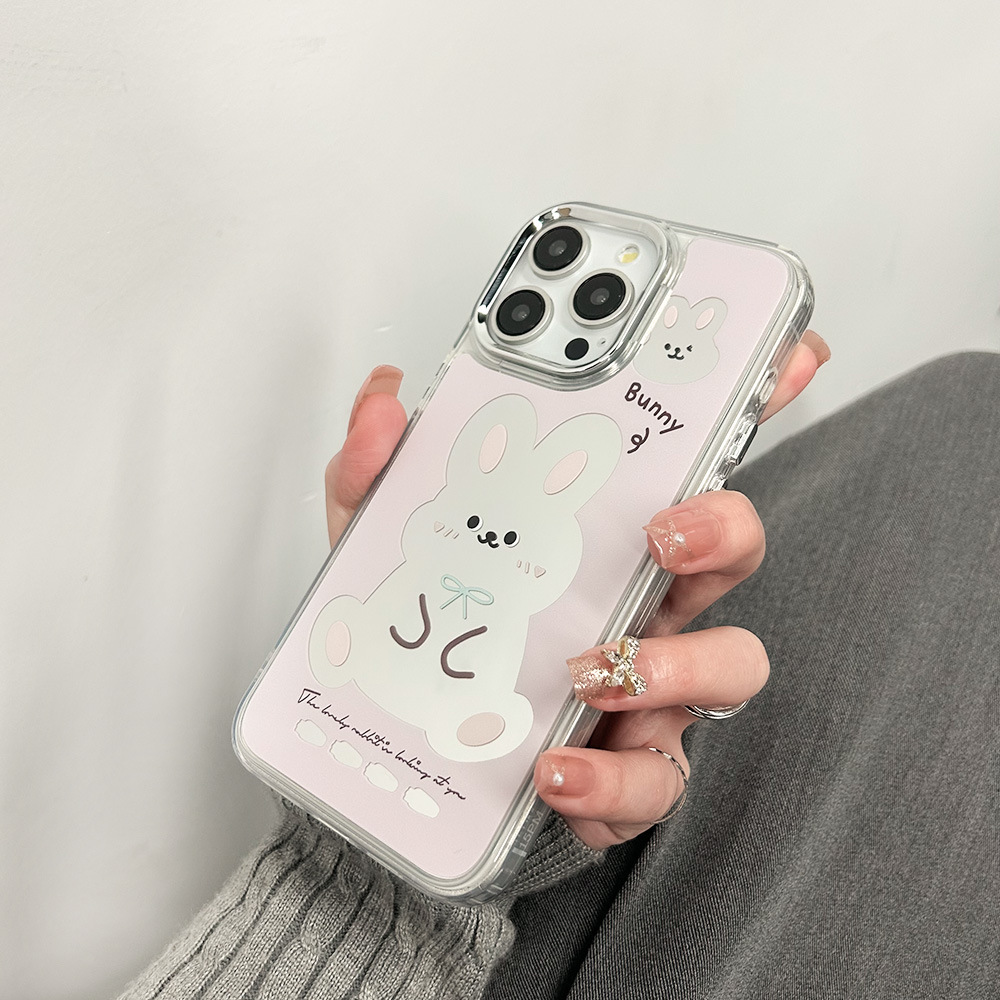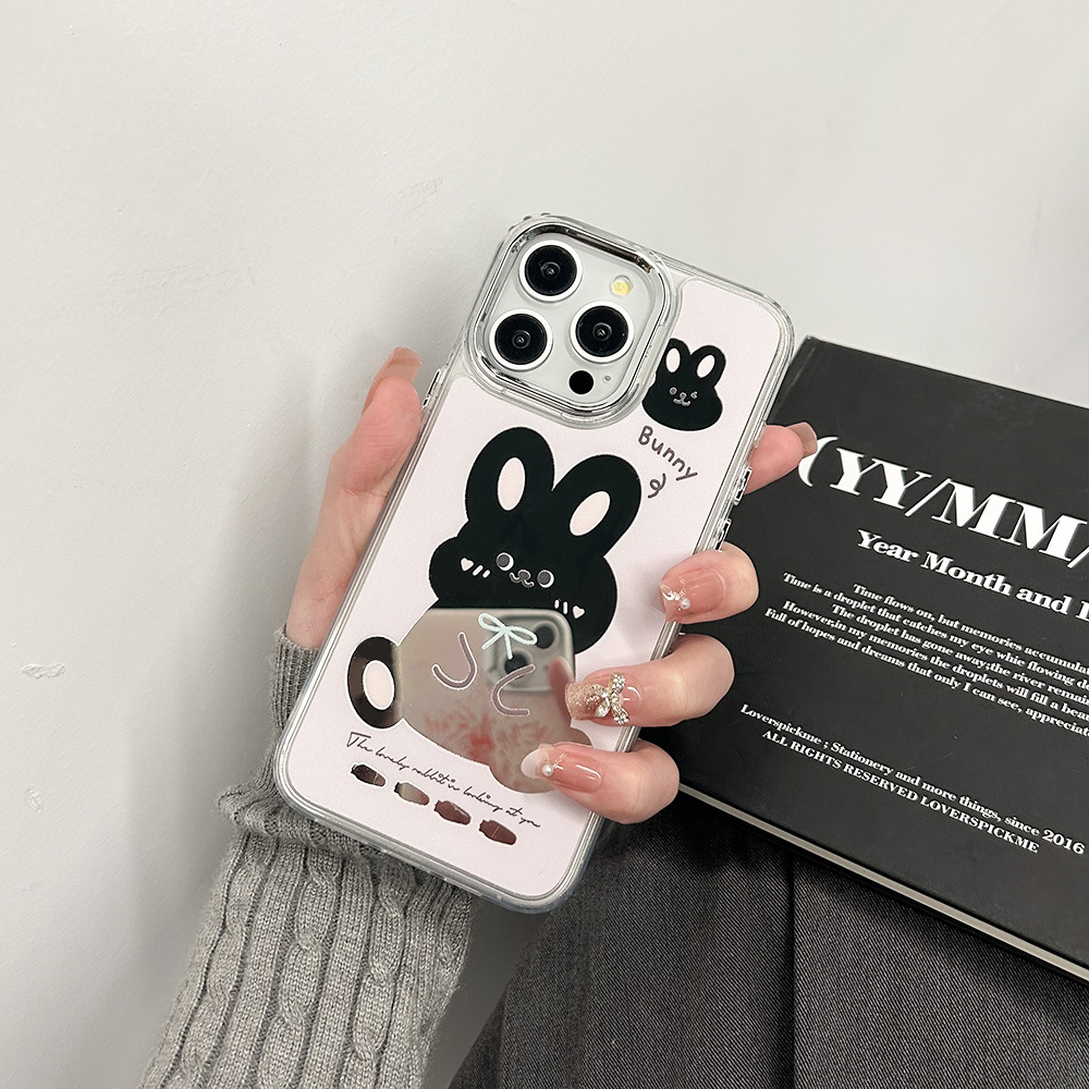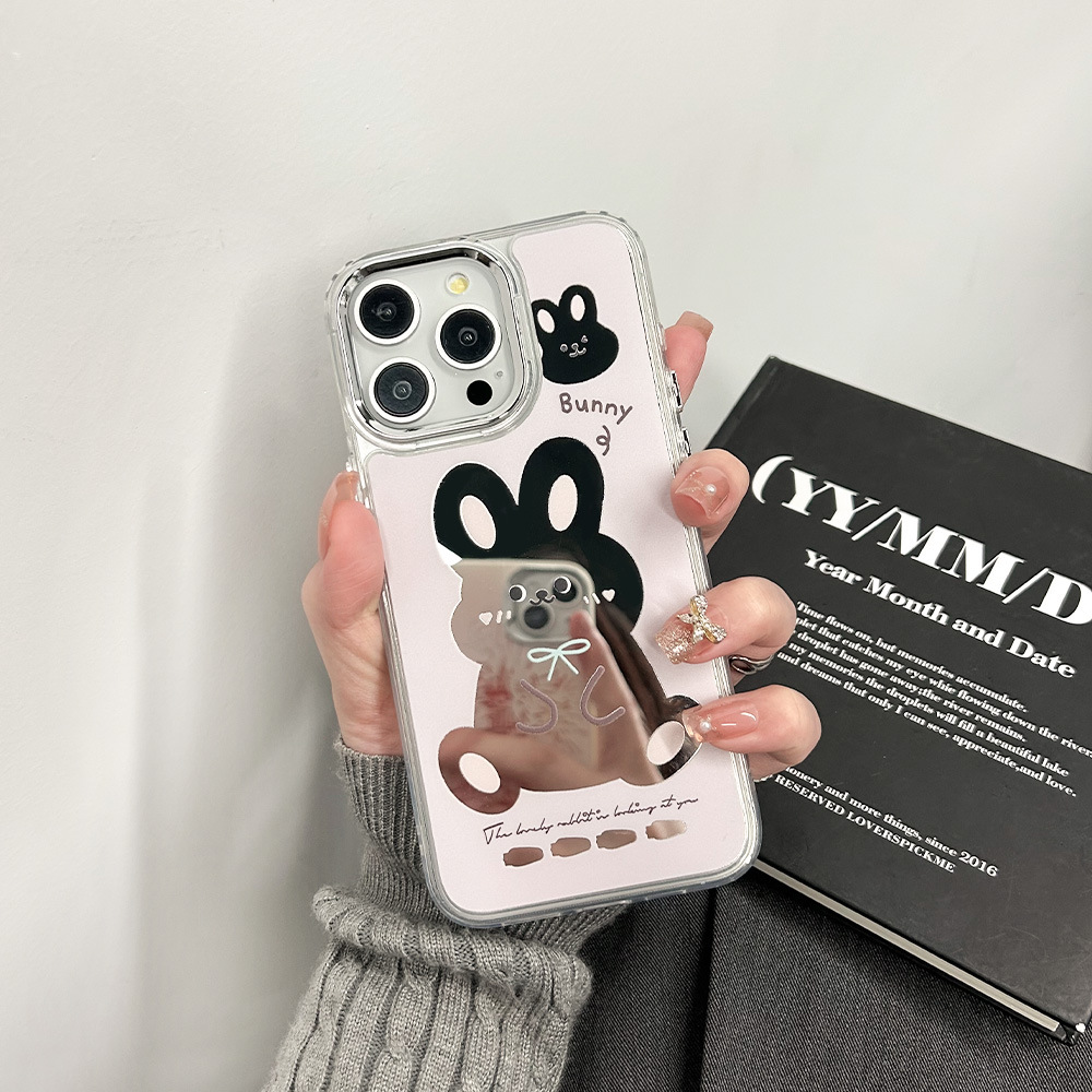 可爱兔子镜面苹果14手机壳iPhone13ProMax硅胶软壳12女日韩风