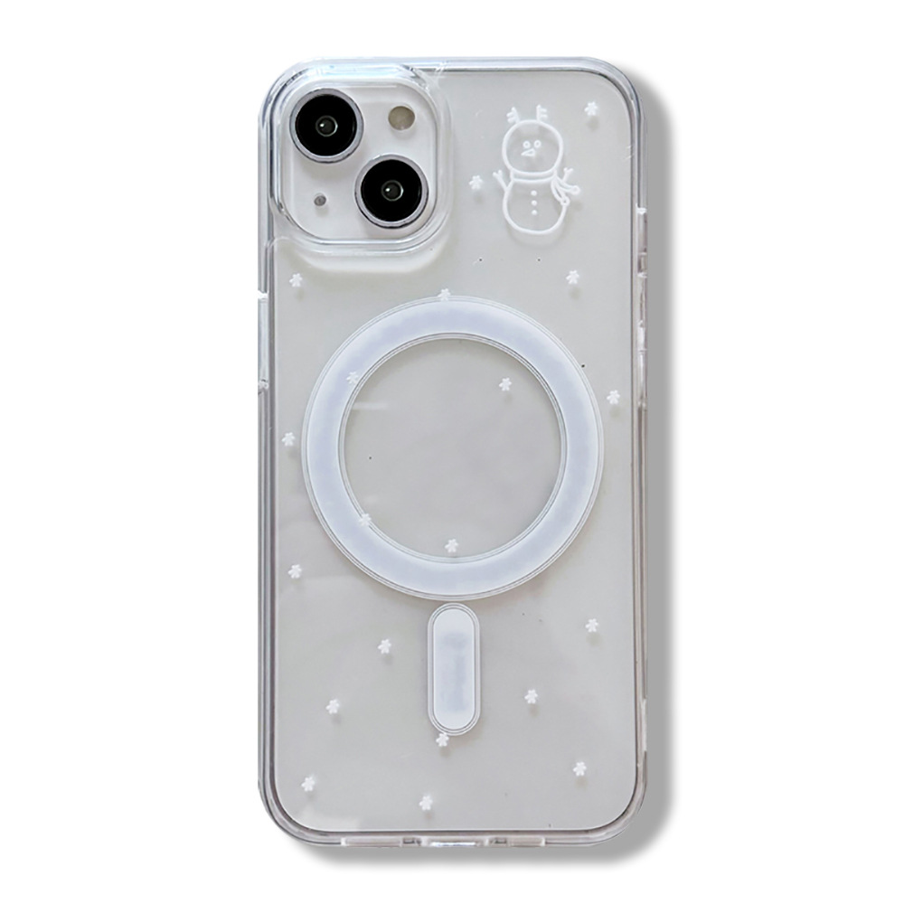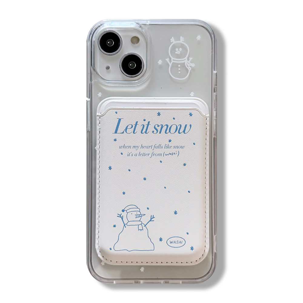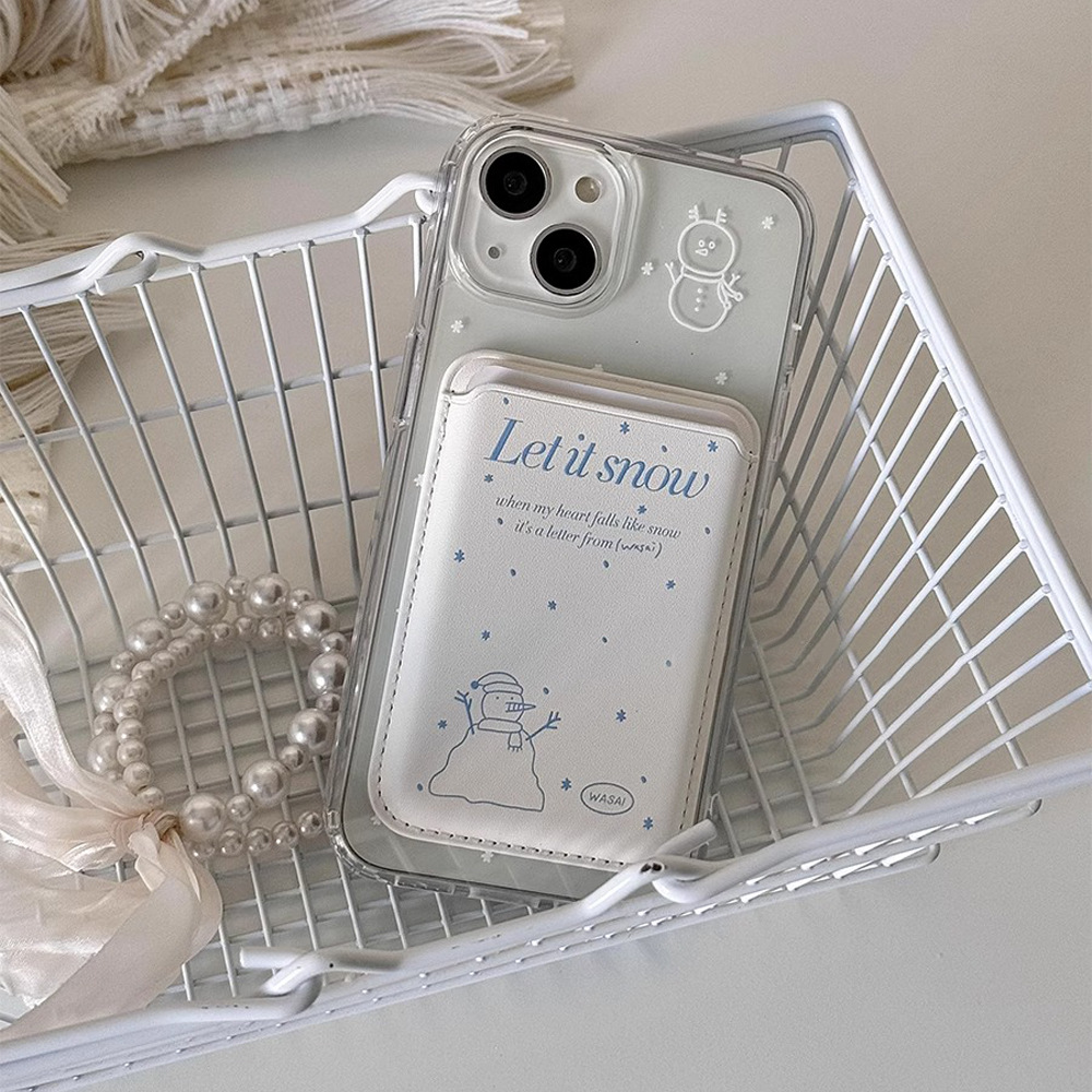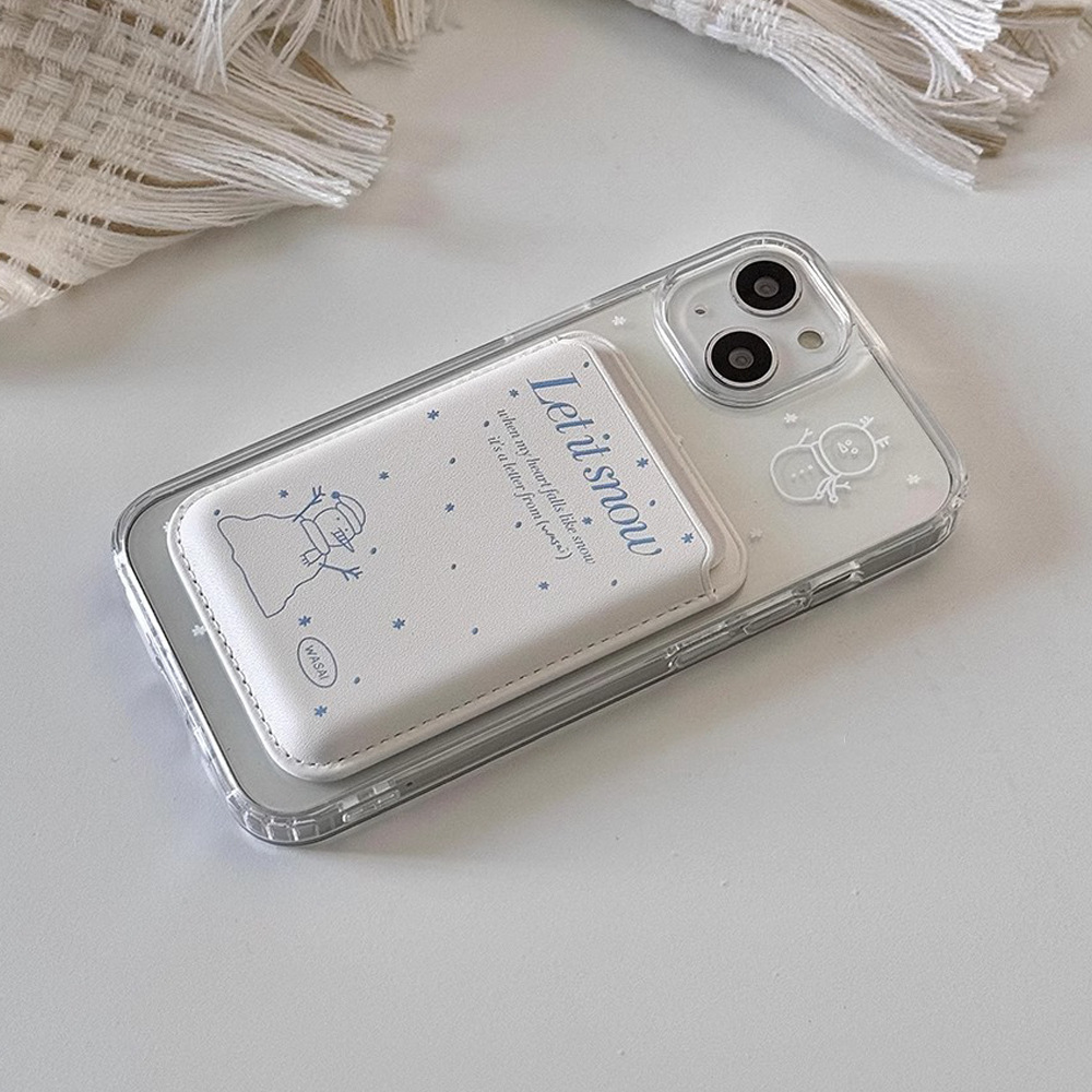 韩国ins白色圣诞雪人磁吸卡包皮革适用iphone15苹果14手机壳13pro