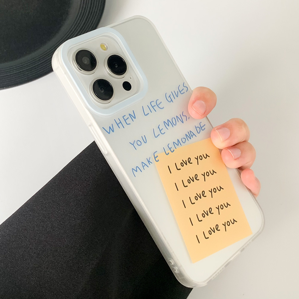 英文便利贴11promax苹果手机壳15plus冰感磨砂大孔iphone14保护套
