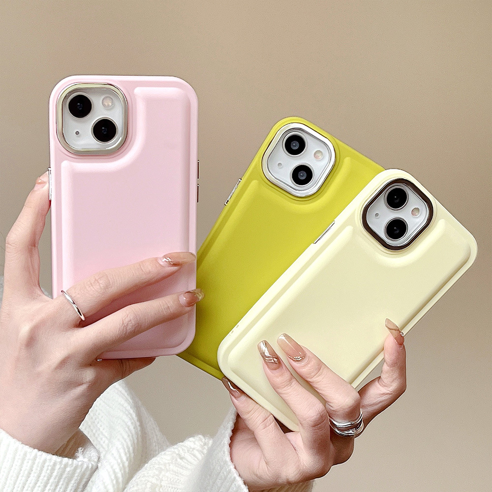 - 电镀圈气垫壳-淡黄色