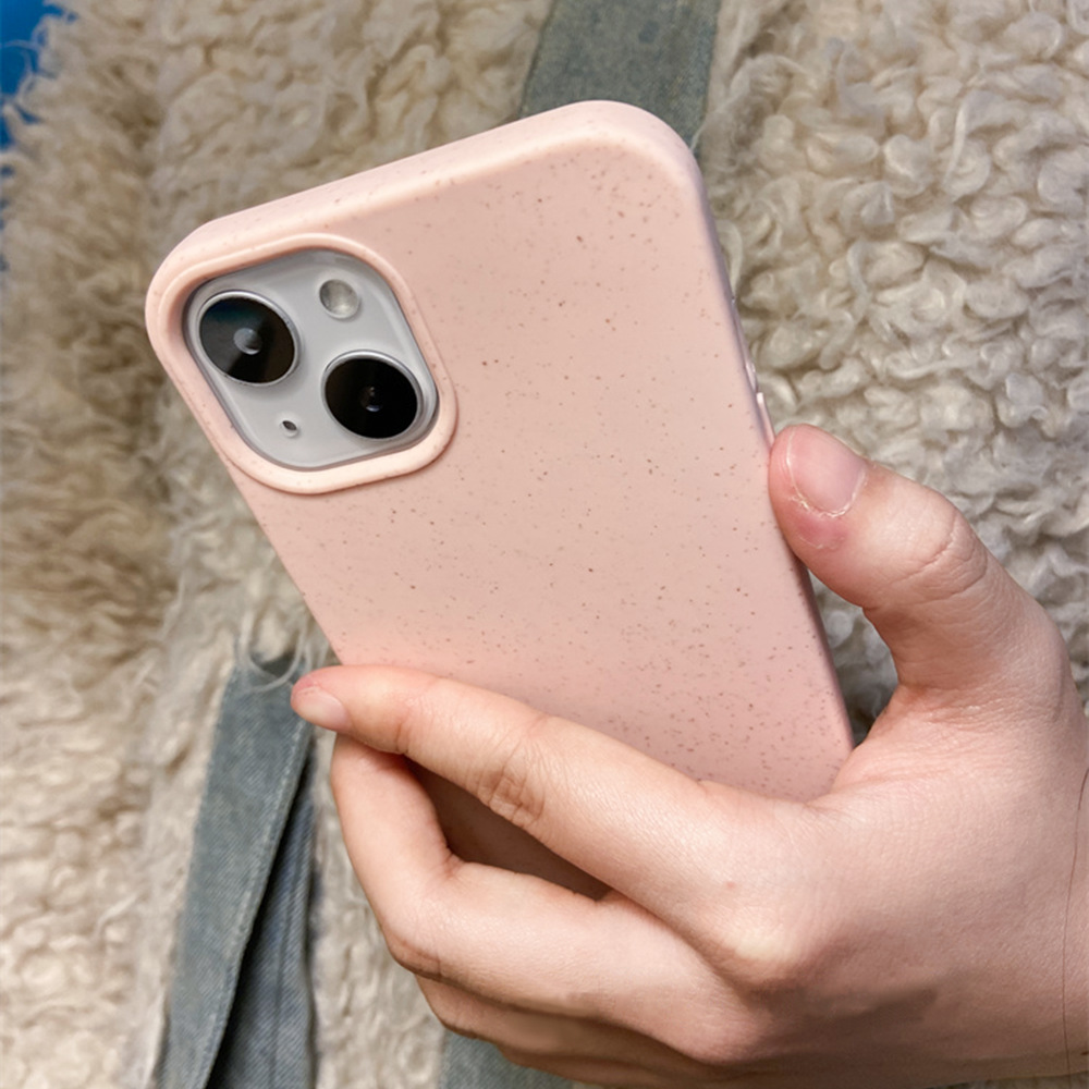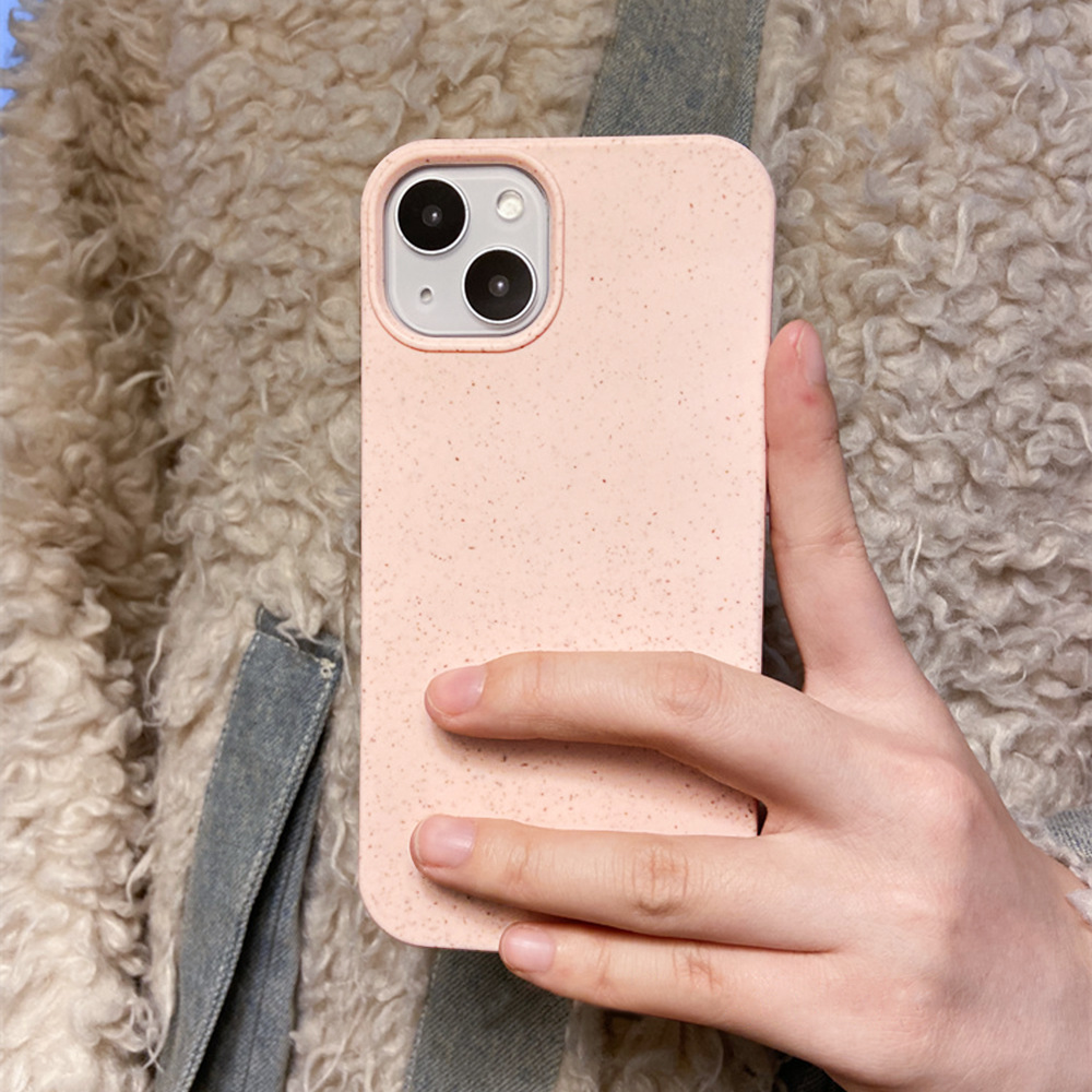 米白可降解14promax苹果iPhone15手机壳13保护套11环保XR大孔软壳