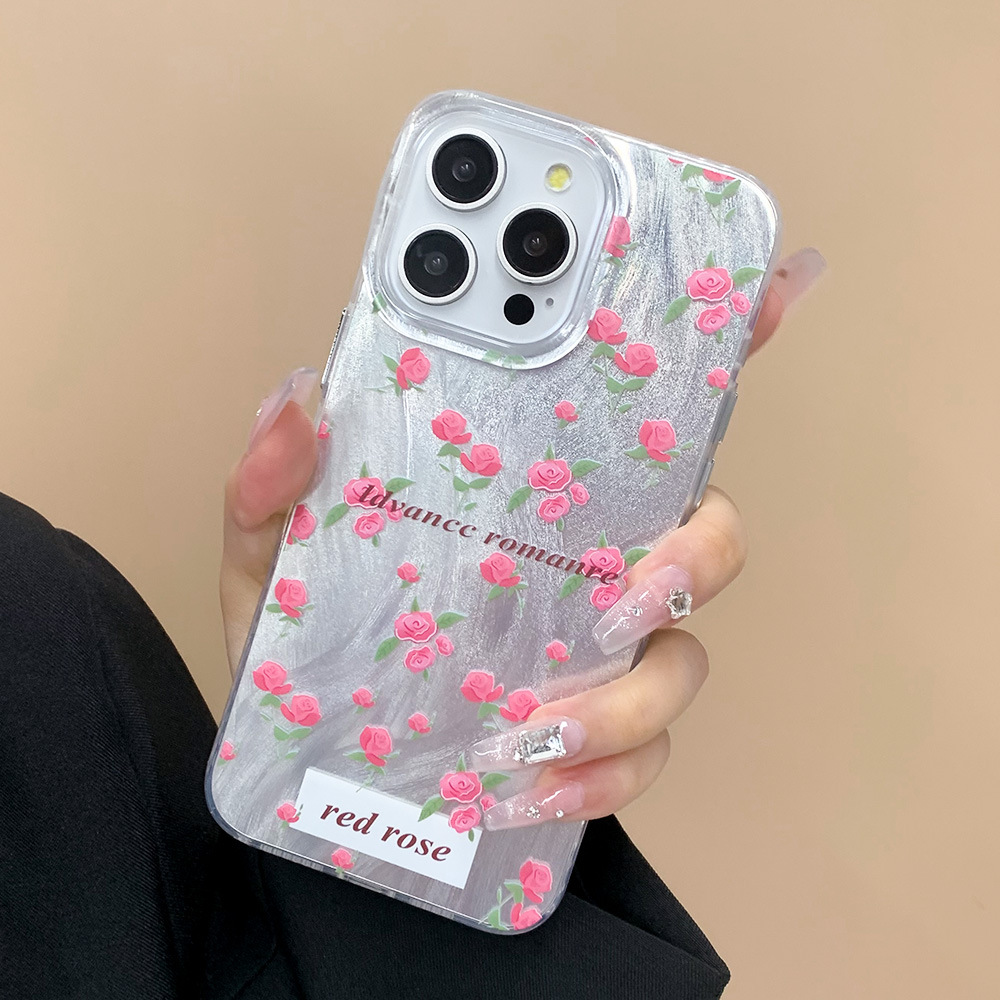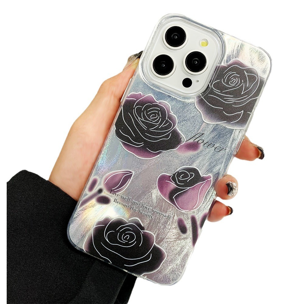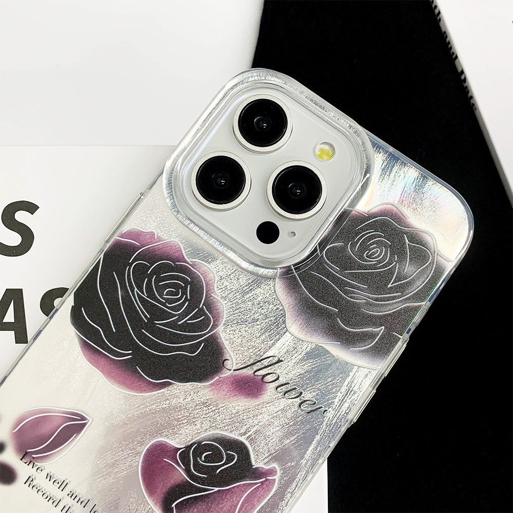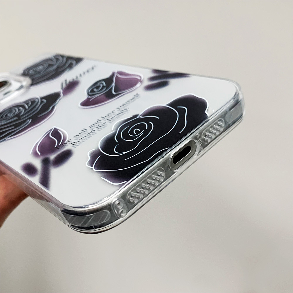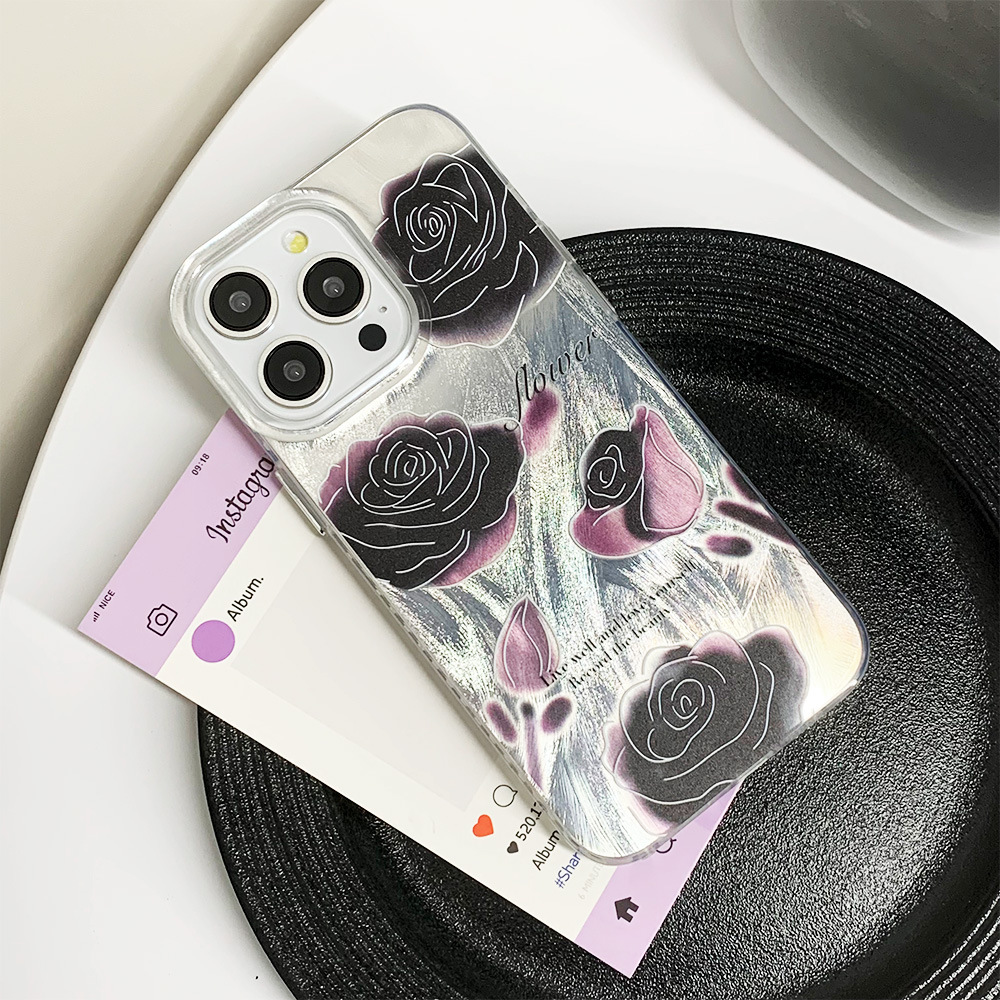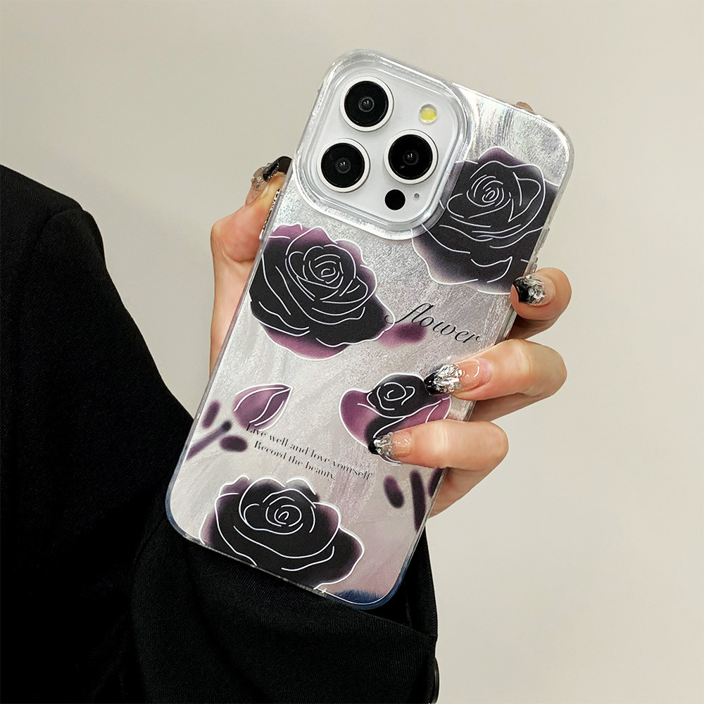 高级感黑色玫瑰15promax手机壳14新款羽纱壳13苹果保护套12防摔11