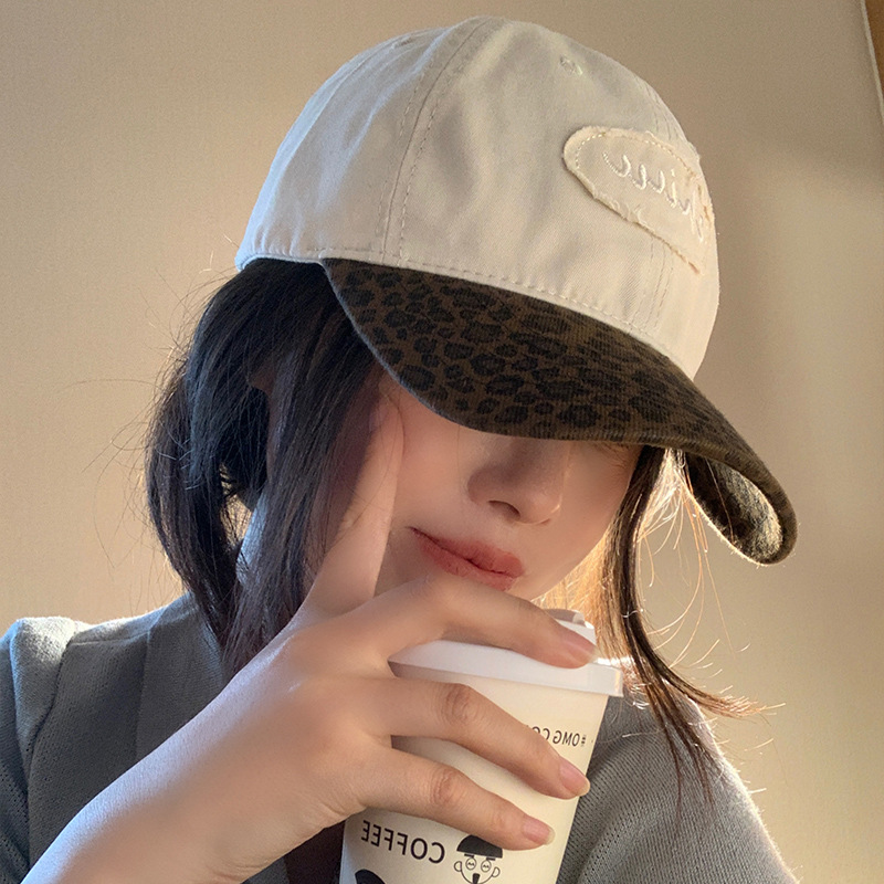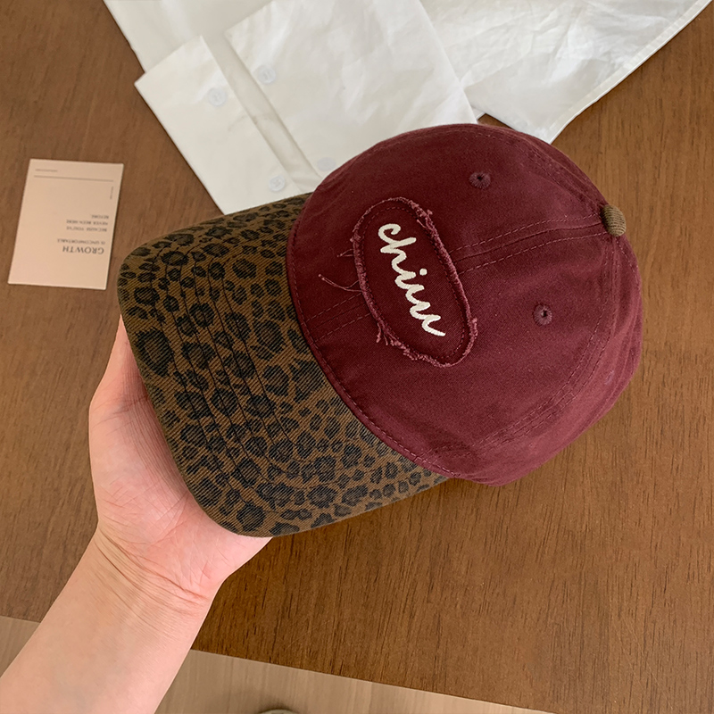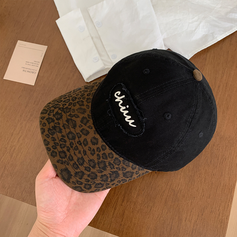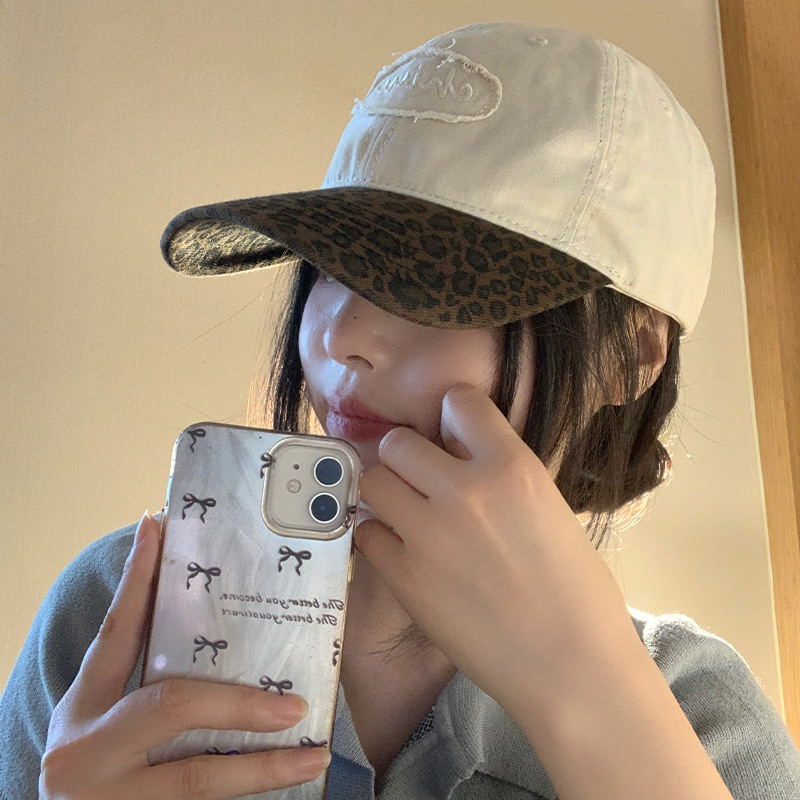 美式复古辣妹豹纹棒球帽女夏季百搭防晒拼色大头围显脸小鸭舌帽子