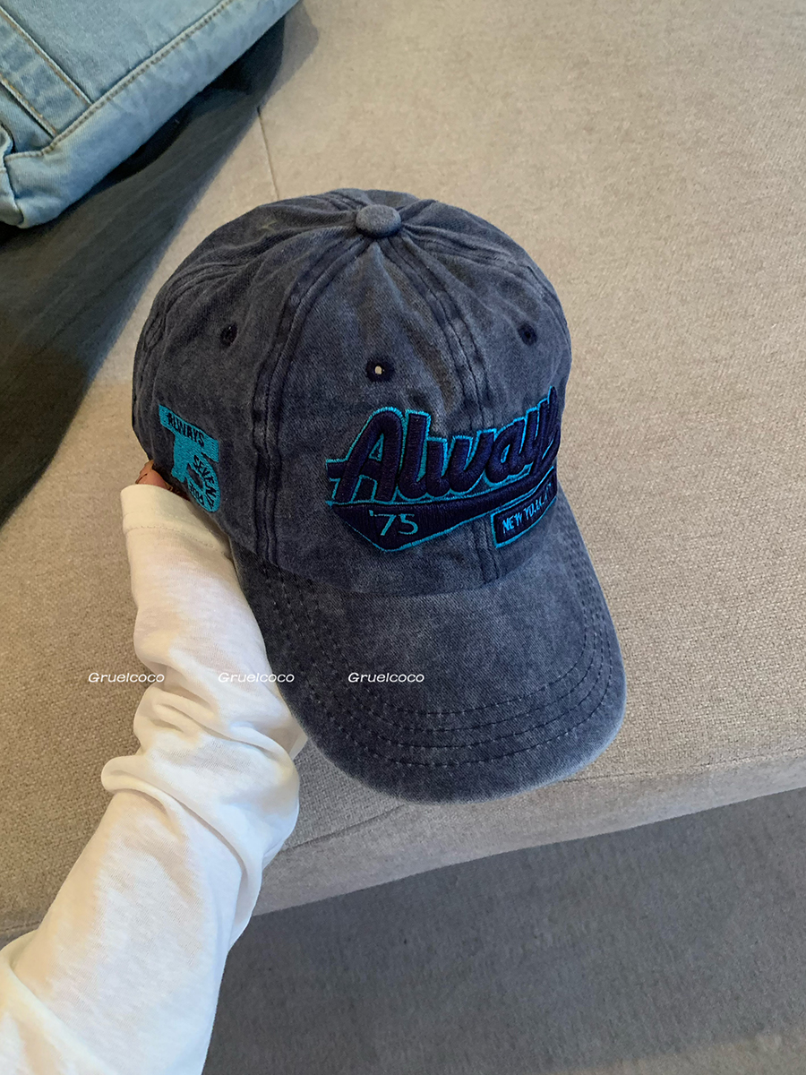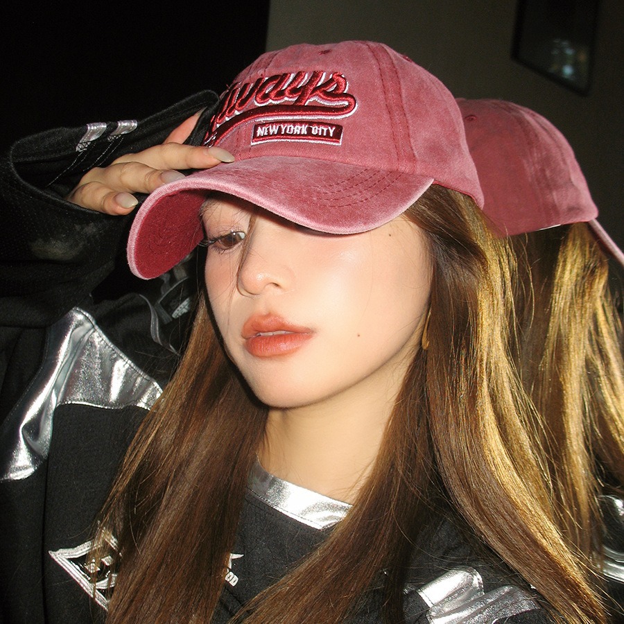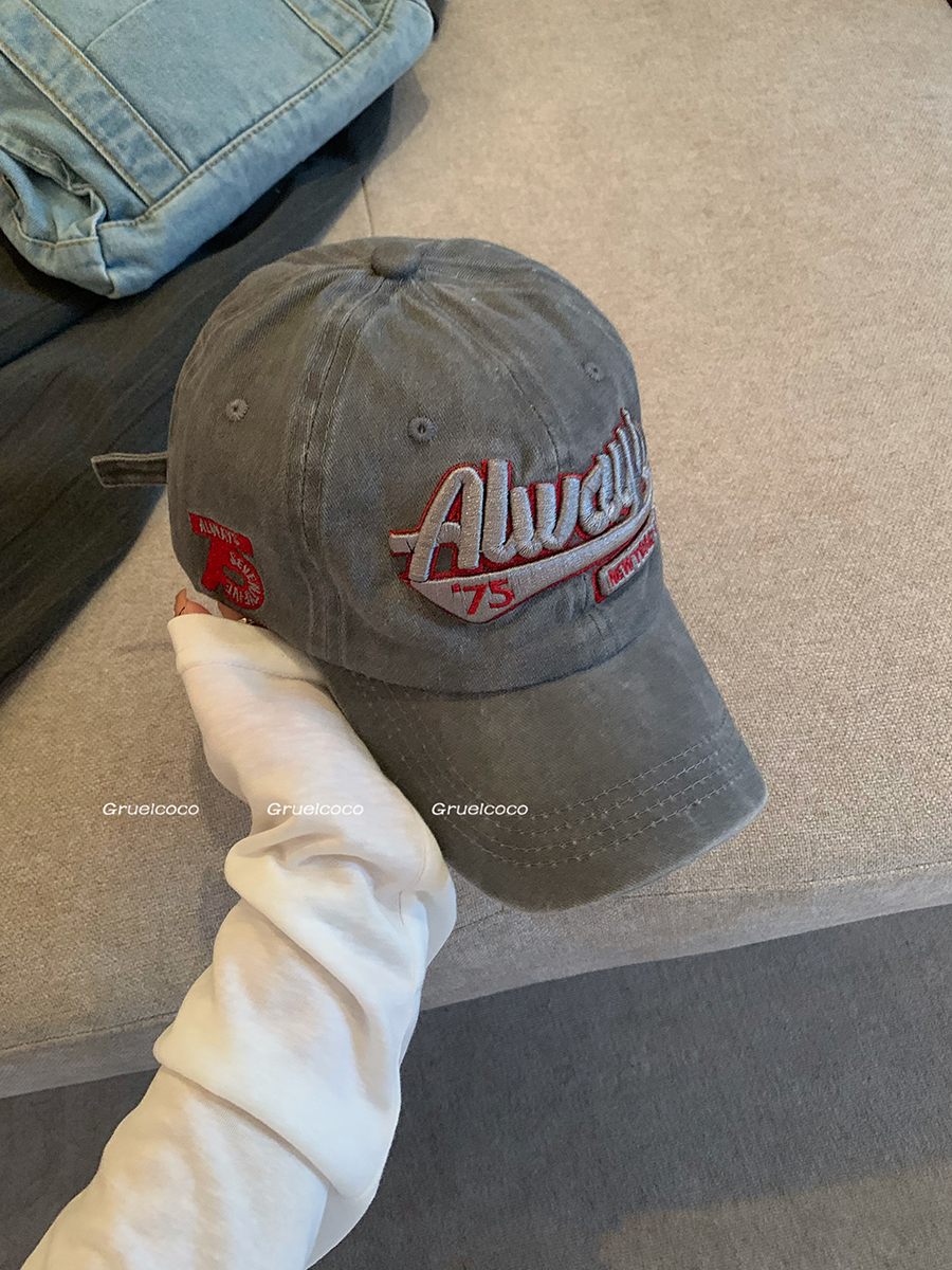 美式复古水洗棉字母刺绣鸭舌帽女大头围显脸小春夏百搭做旧棒球帽