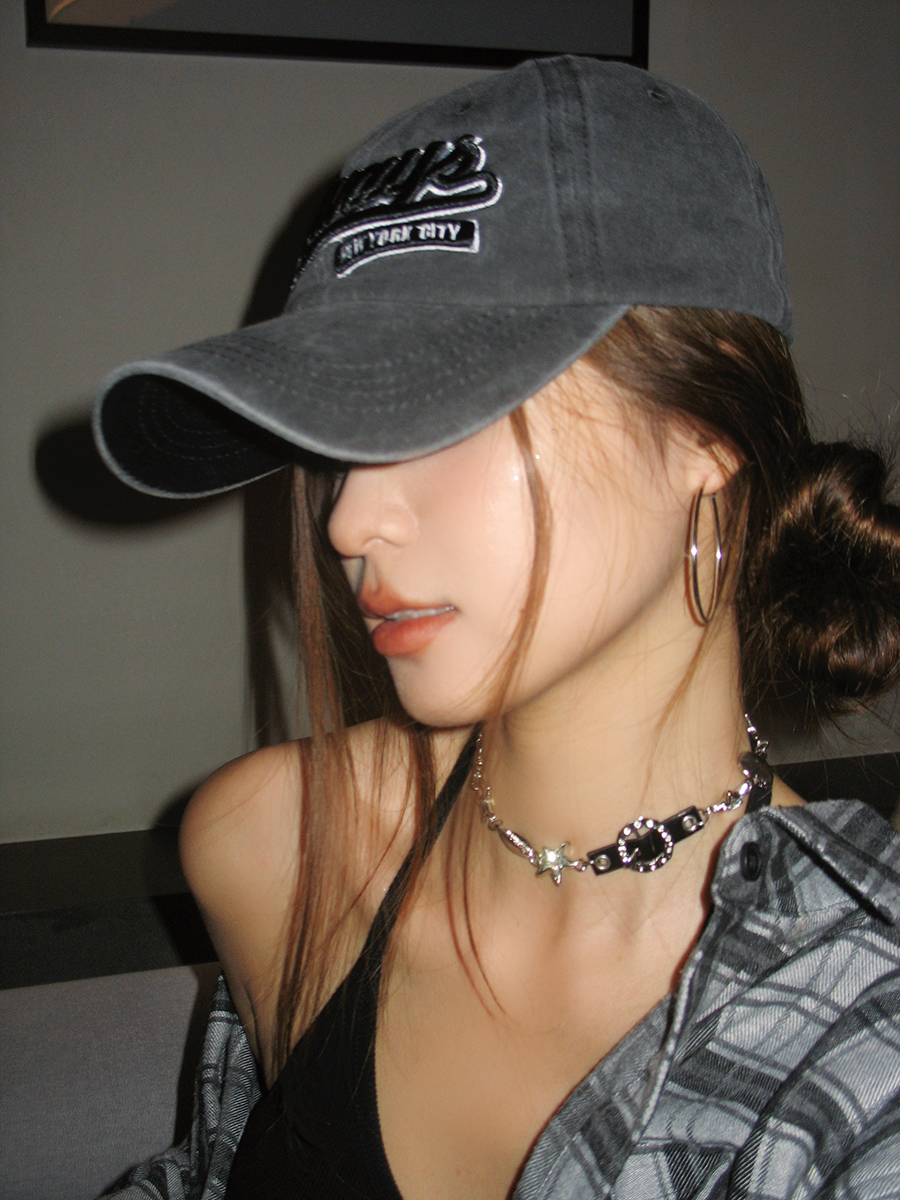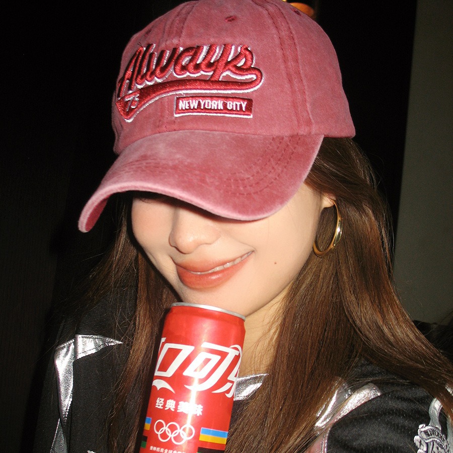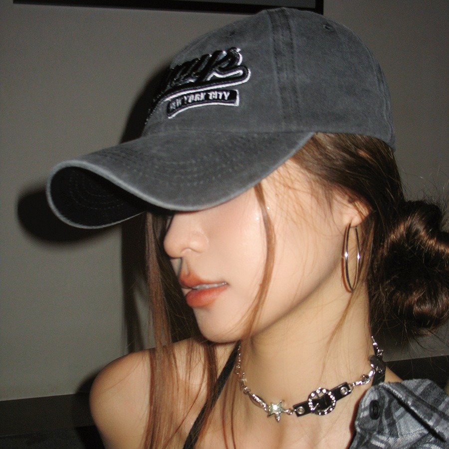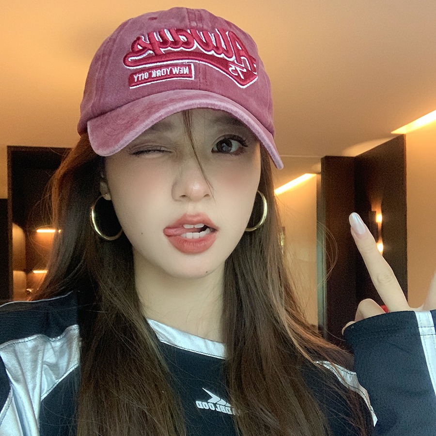 美式复古水洗棉字母刺绣鸭舌帽女大头围显脸小春夏百搭做旧棒球帽